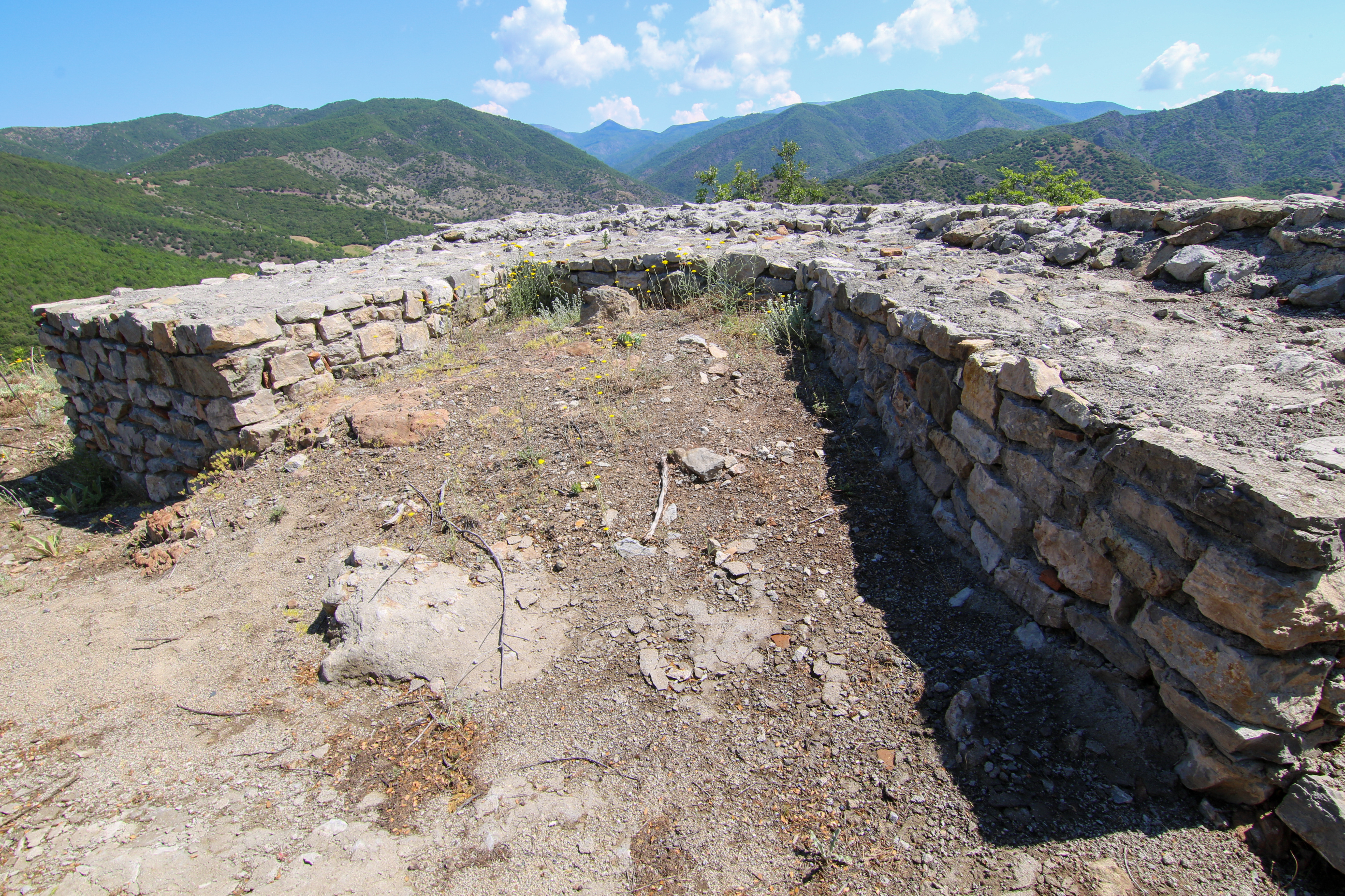 English: The archaeological site called Kale or Strezov Grad (Town of Strez), which is almost 100% accepted as the Medieval town of Prosek. Located near the town of Demir Kapija, Macedonia. The photography shows foundations of a tower.