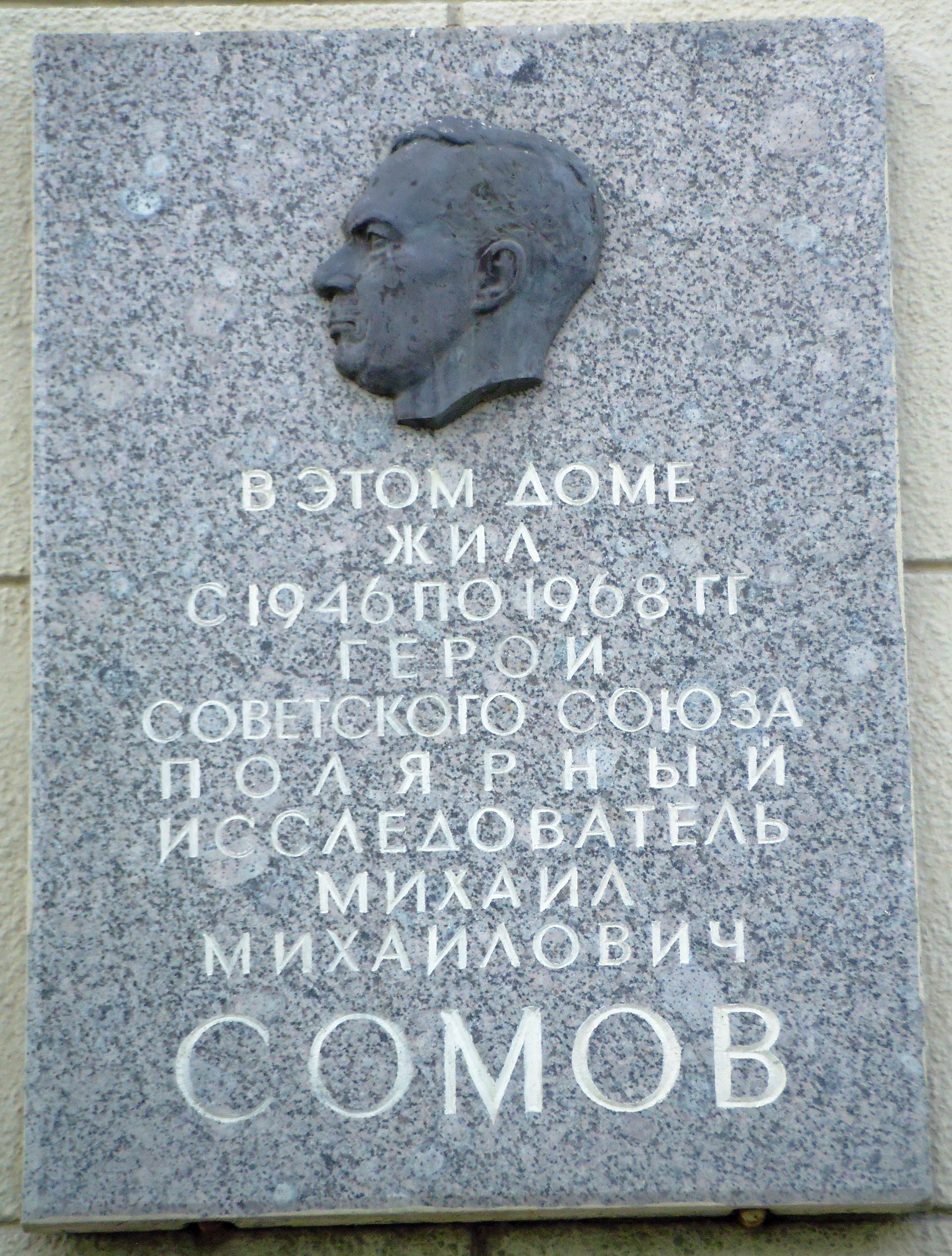 ملف:Санкт-Петербург. пл.Ленина Мемориальная доска полярнику Сомову.jpg