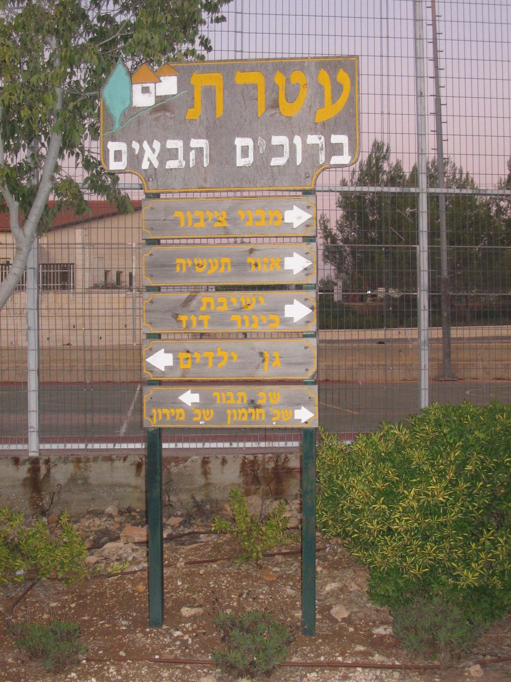 English: Щит с указателями в Атерет |