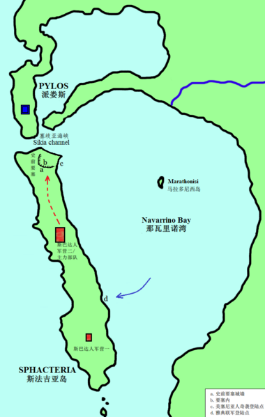 English: A map of Battle of Sphacteria, Chinese version.