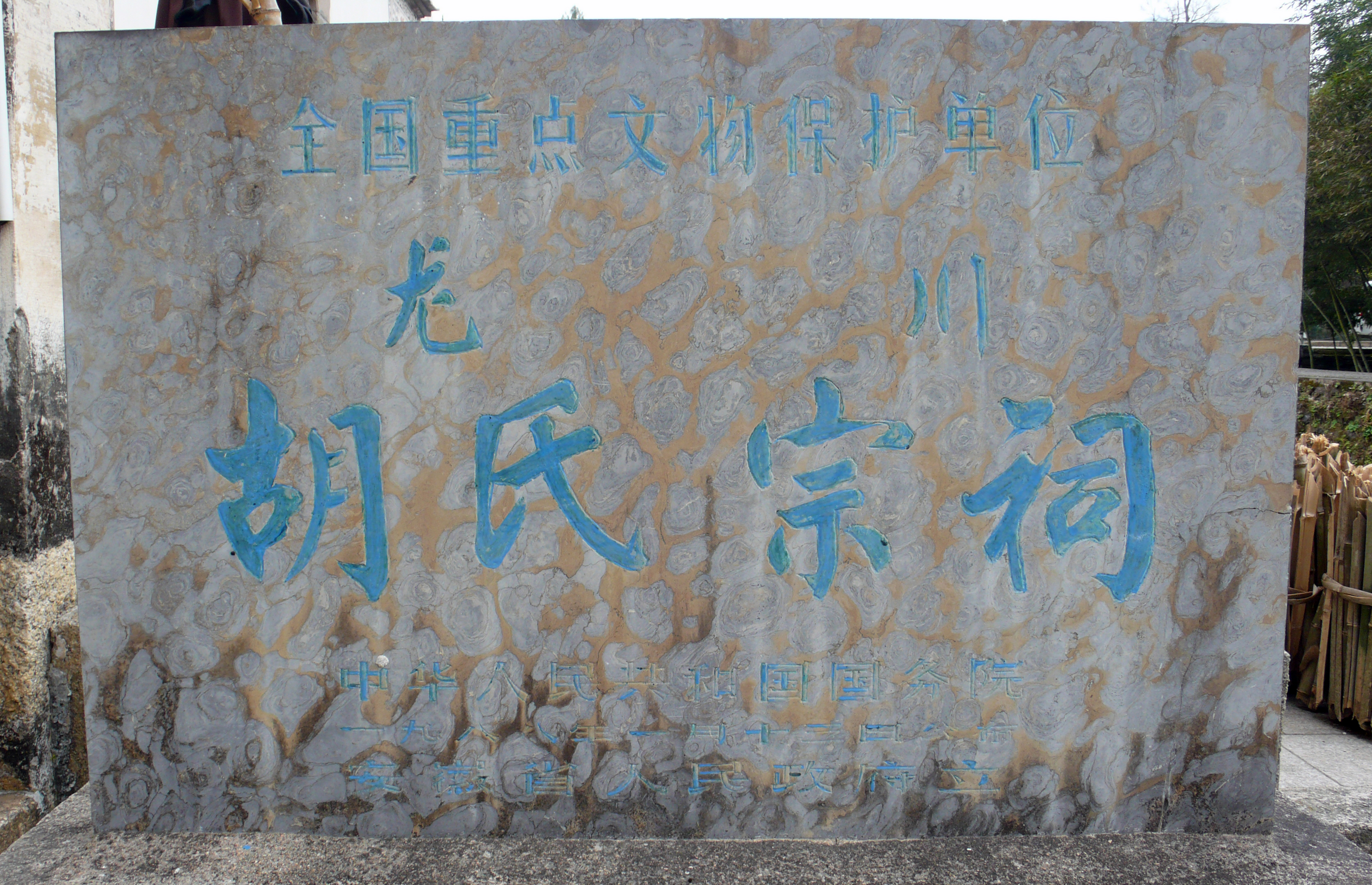 Description الصينية: 龙川胡氏宗祠国家级文物保护单位碑。