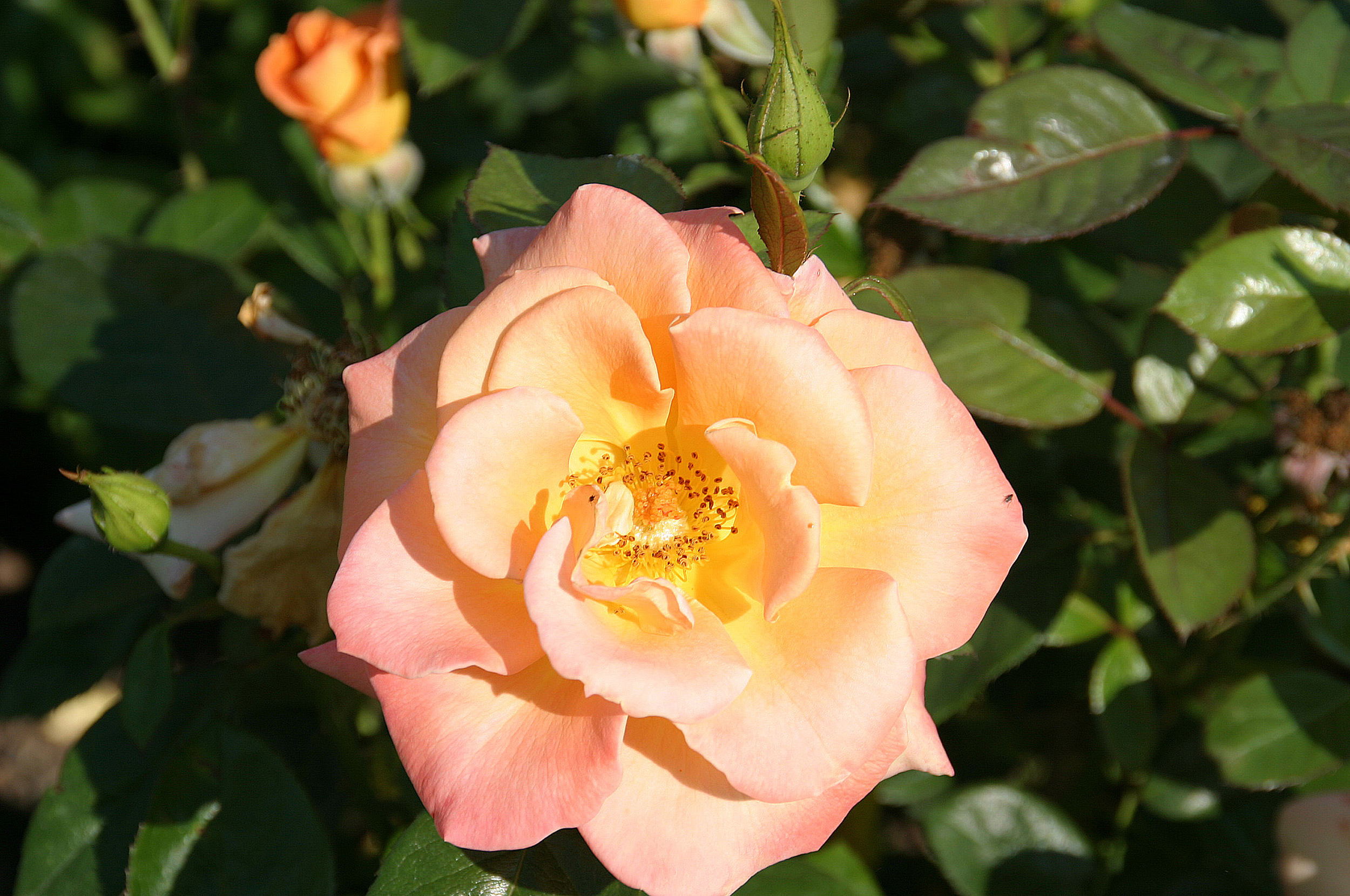 Deutsch: China-Rose (Rosa chinensis), auch Teerose genannt. Sie zählt zu den ältesten Gartenrosen und wurde im 18. Jahrhundert aus China eingeführt. Die China-Hybriden gibt es in vielen verschiedenen Farben.