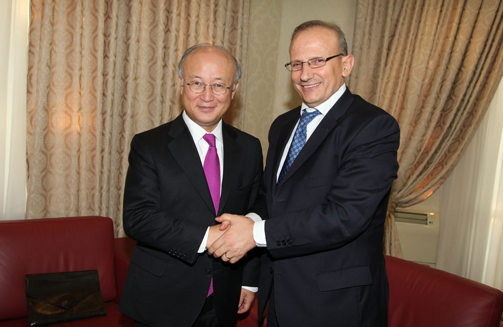 | Description | IAEA Director General Yukiya Amano's meeting with Mr. Myqerem Tafaj, Minister of Education and Science of Albania, 14 July 2011. |