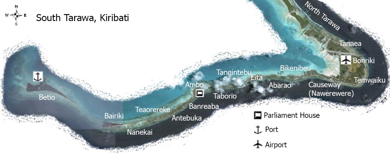 | Source | Astronaut photo of South Tarawa, Kiribati, with villages and main landmarks |