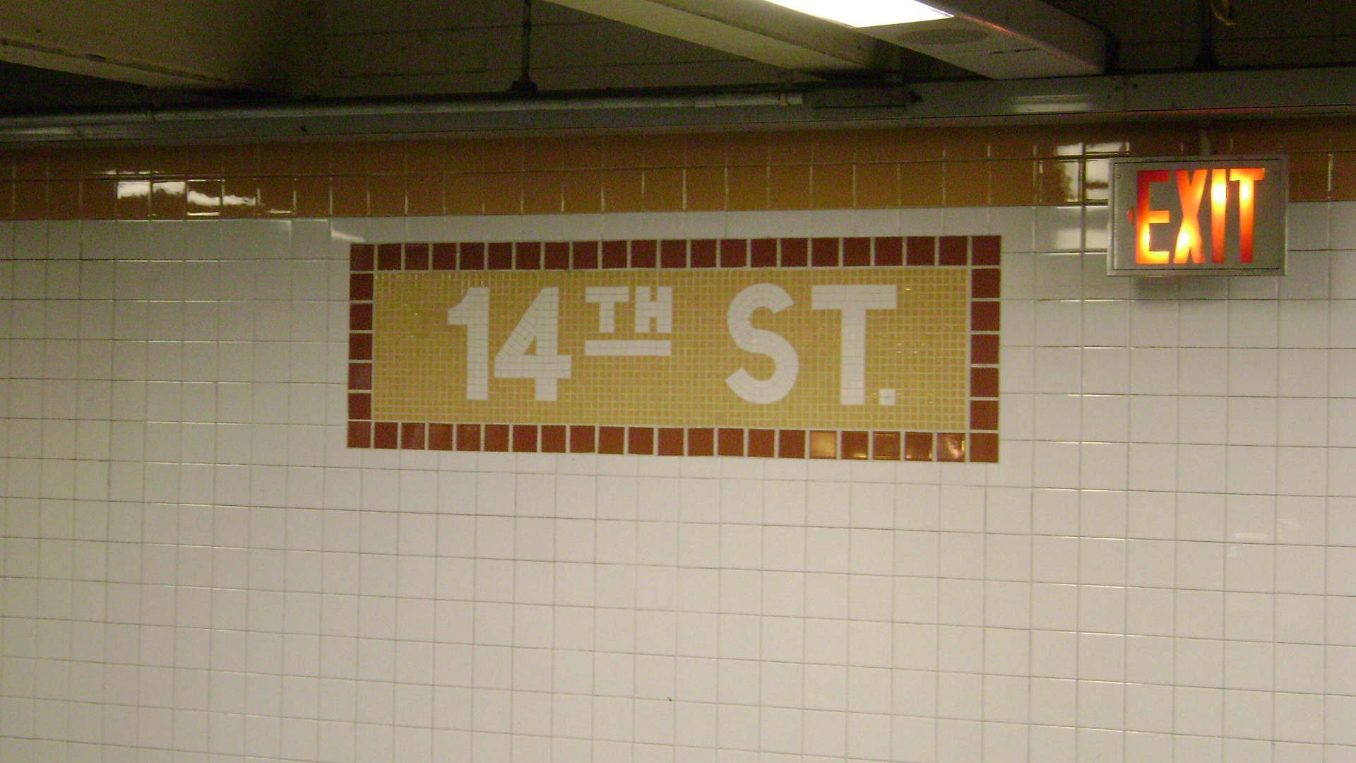 | Description | The 14th Street tiled tablet, a staple among most subway stations in New York City. |