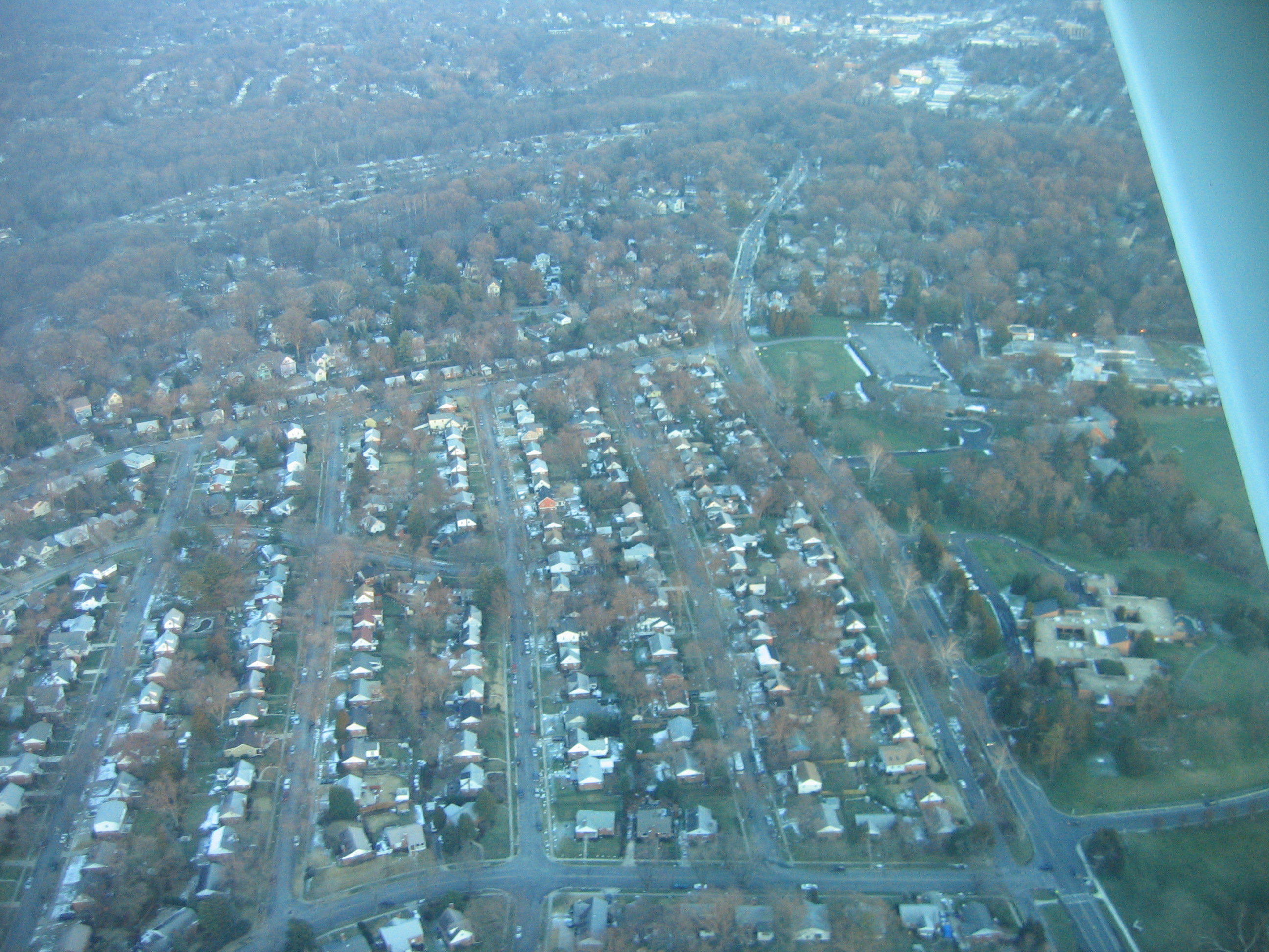 The foreground in this picture is not Garrett Park. The section with the street grids is the neighborhood of White Flint, MD, zipcode: Rockville, MD. Garrett Park begins at the end of the street grid, the neighborhood with heavy tree cover in the middle ground, about 2/3 up from the bottom of the photo.