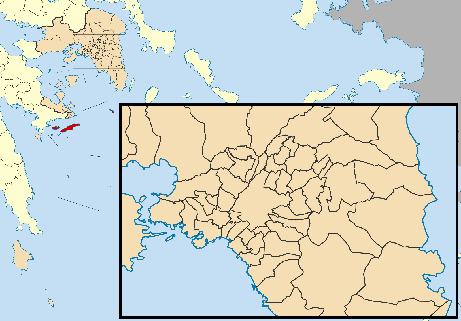 Deutsch: Lage der Gemeinde Hydra in der griechischen Region Attika (2011) |