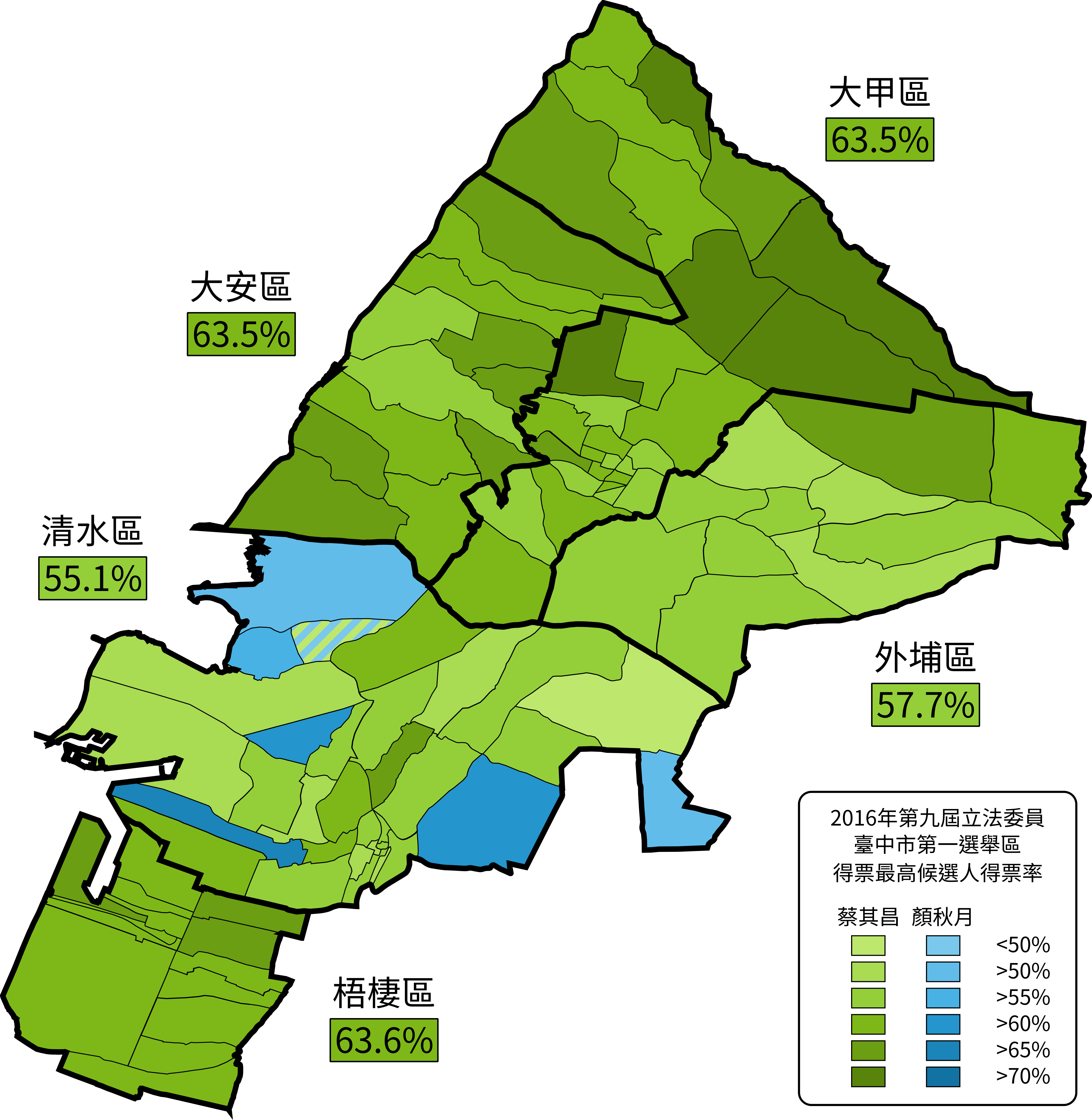 الصينية: 2016年臺中市第二選舉區立法委員選舉結果地圖(里別結果) |