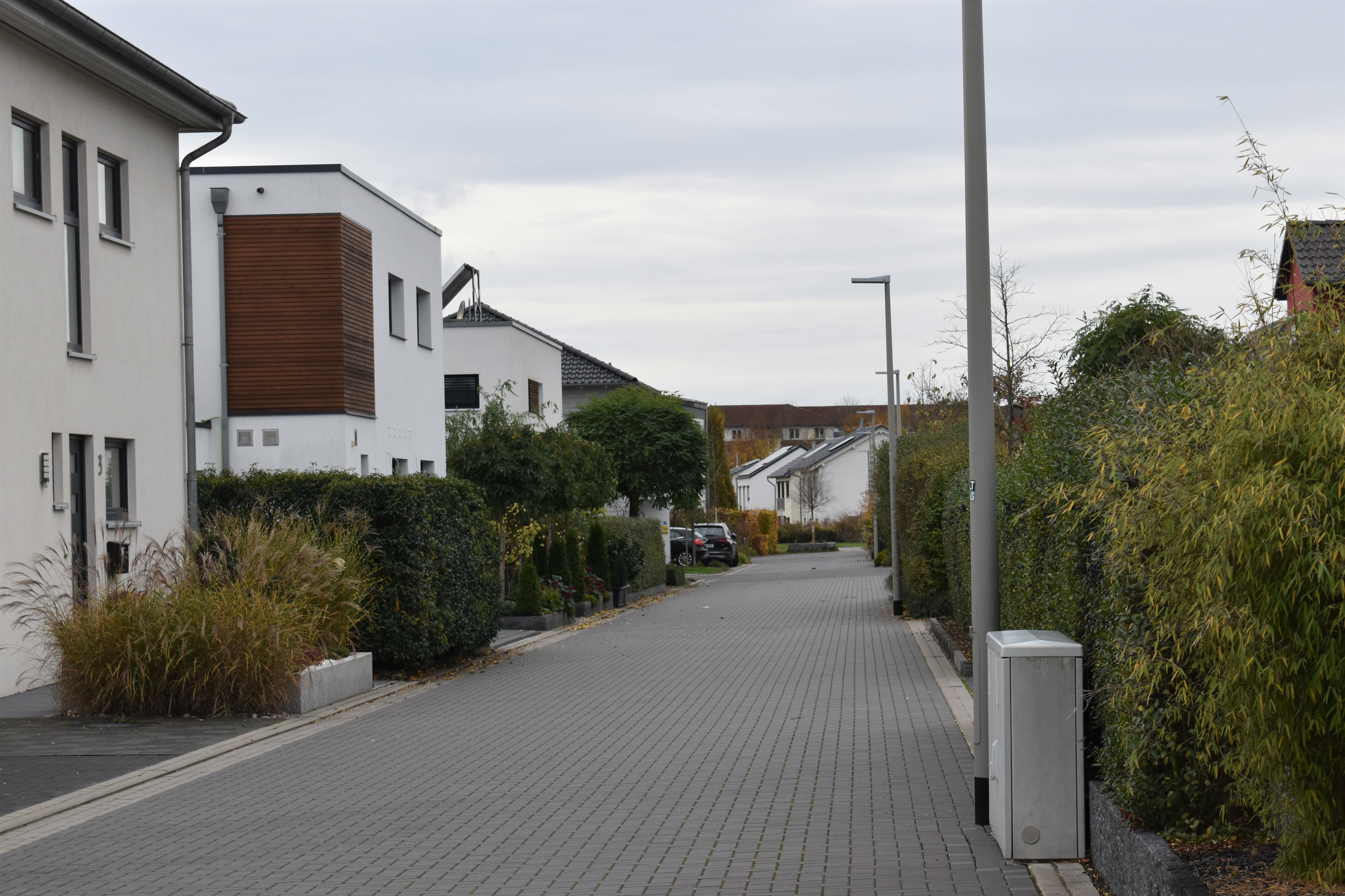 Deutsch: Blick von der Einmündung in den Mühlenwinkel nach Westen in den Gabriele-von-Glasow-Weg in Hannover im Stadtteil Wettbergen |