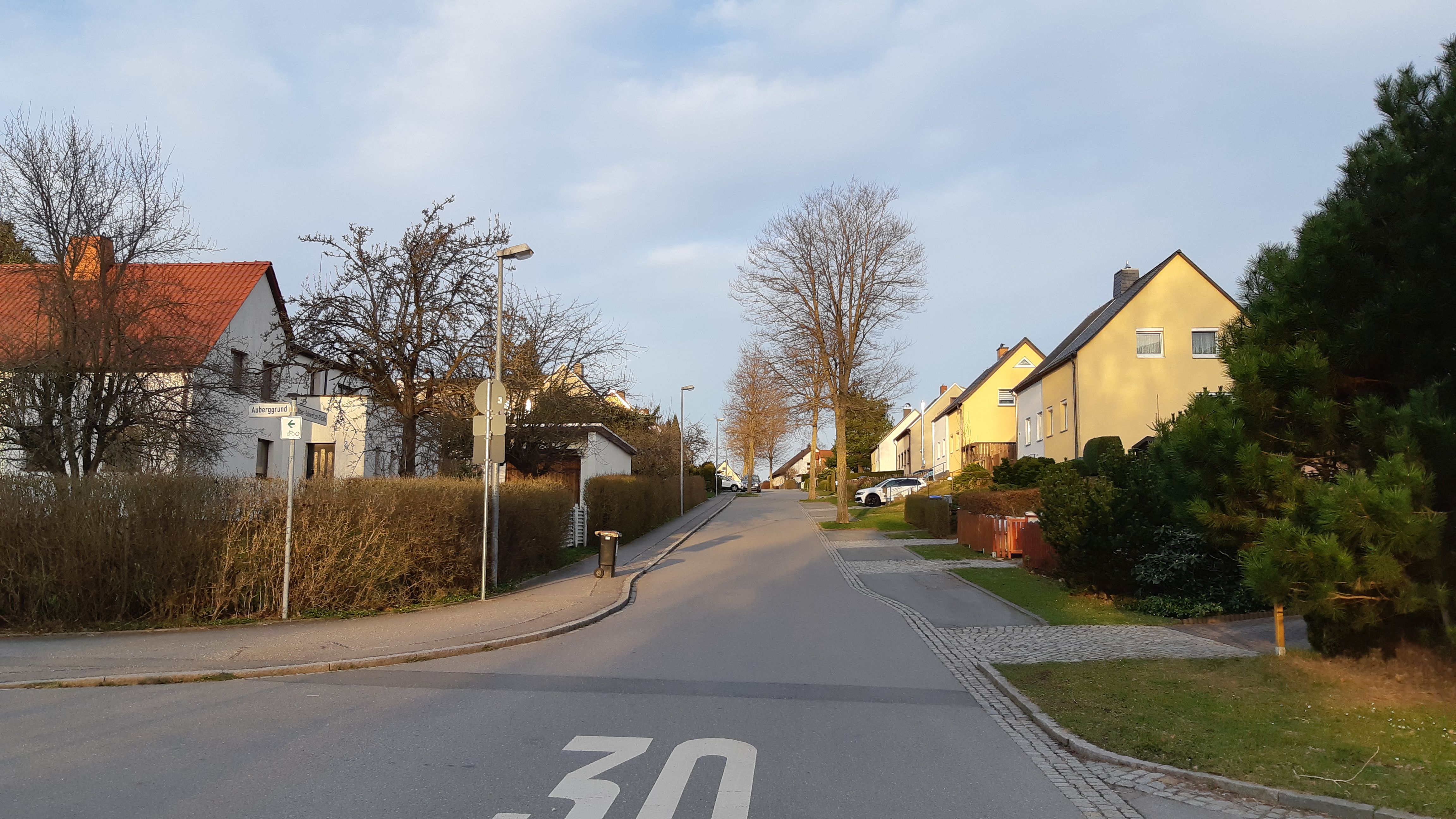 Deutsch: Blick ostwärts entlang der Albert-Schweitzer-Straße auf Höhe des Auberggrunds, Chemnitz-Altendorf |