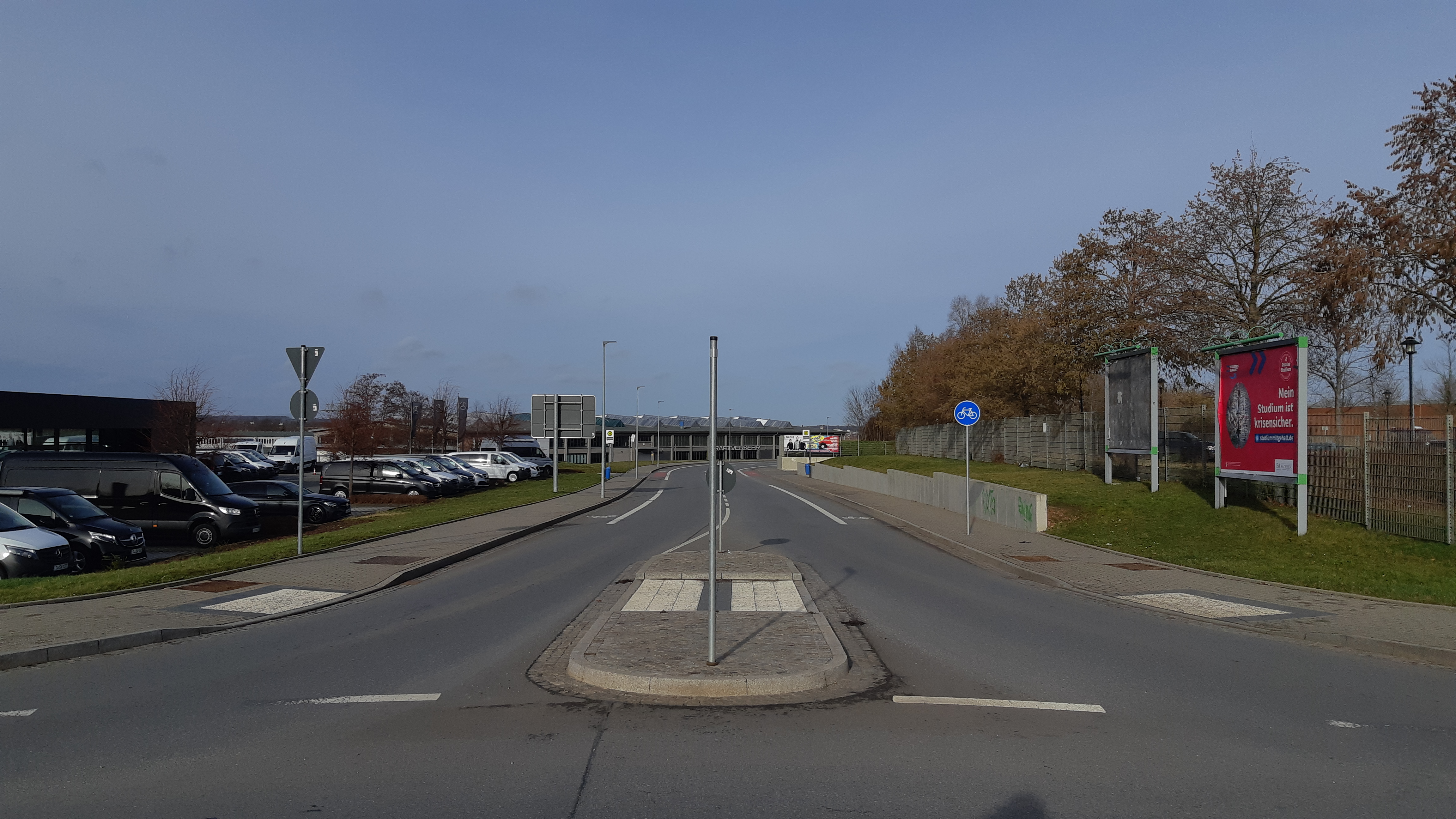 Deutsch: Blick vom Kreisverkehr an der Werner-Seelenbinder-Straße in die Fraunhoferstraße, Chemnitz-Bernsdorf. |