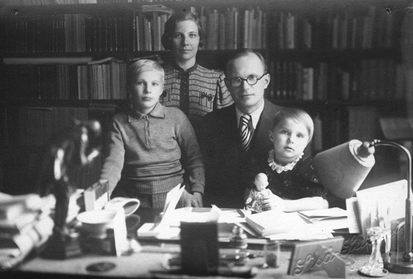 English: Photograph of the Finnish linguist Aarni Penttilä (1899–1971) with his family. |