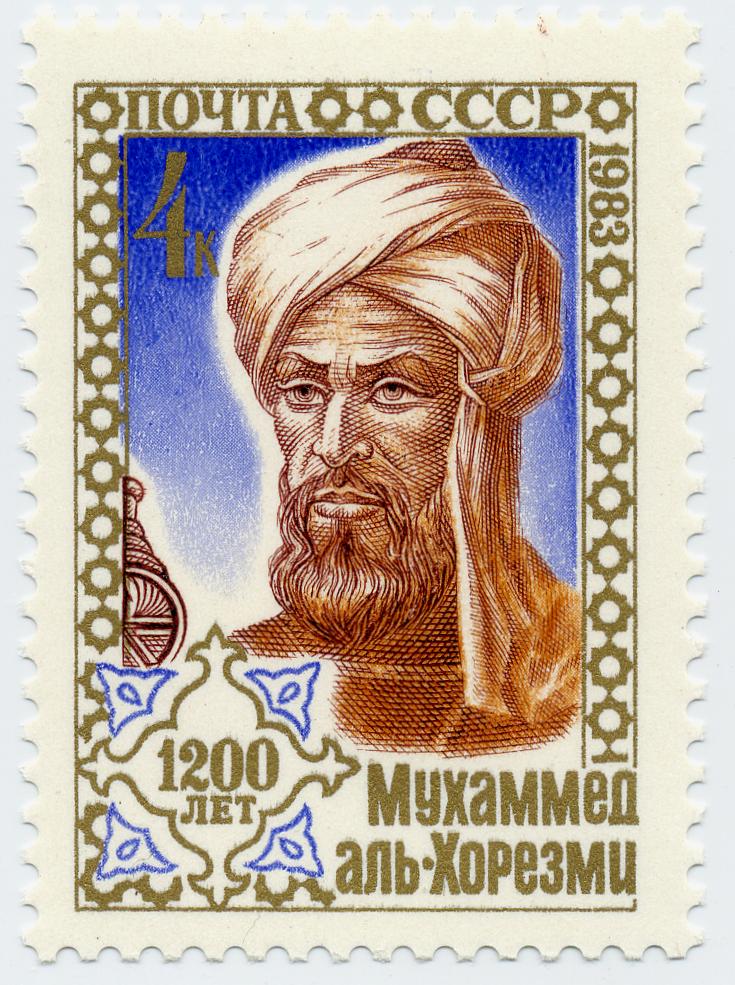 طابع [[[[صورة:خطأ رياضيات (خطأ في الصيغة): {\displaystyle بريد سوفييتي يحمل صورة للخوارزمي} ]]]]