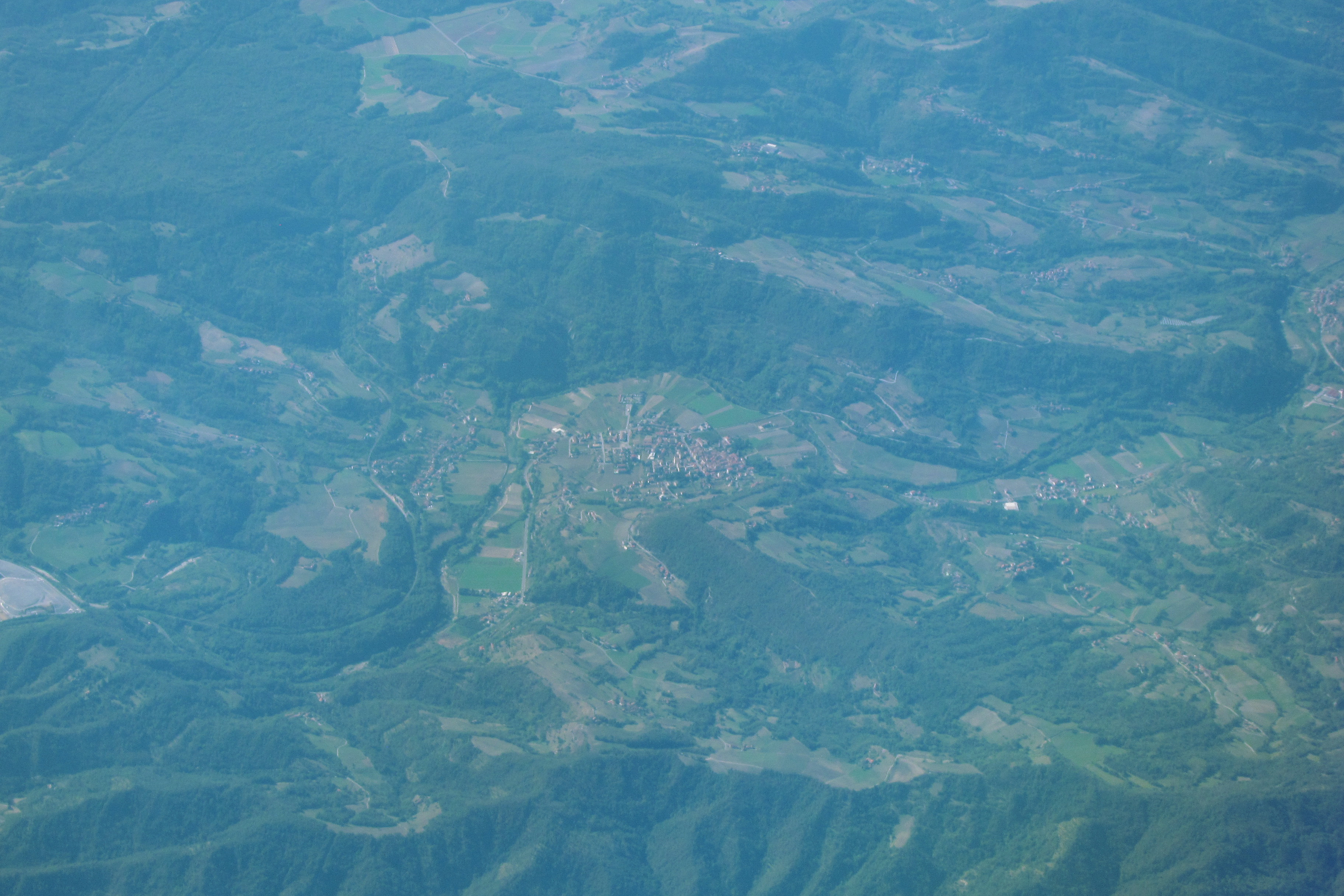 English: Long-distance aerial photograph of Saliceto, Italy |