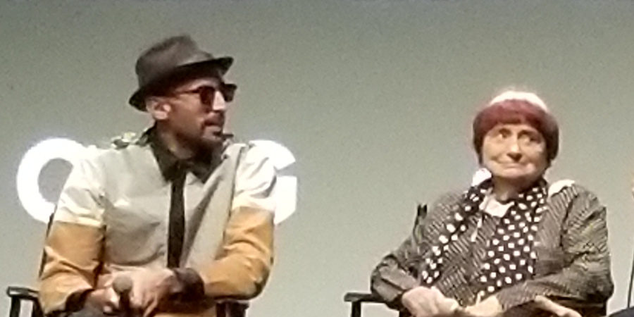 English: Agnès Varda and JR at a Q&A for Faces Places at the Lincoln Center for the Performing Arts in New York City, New York, United States |