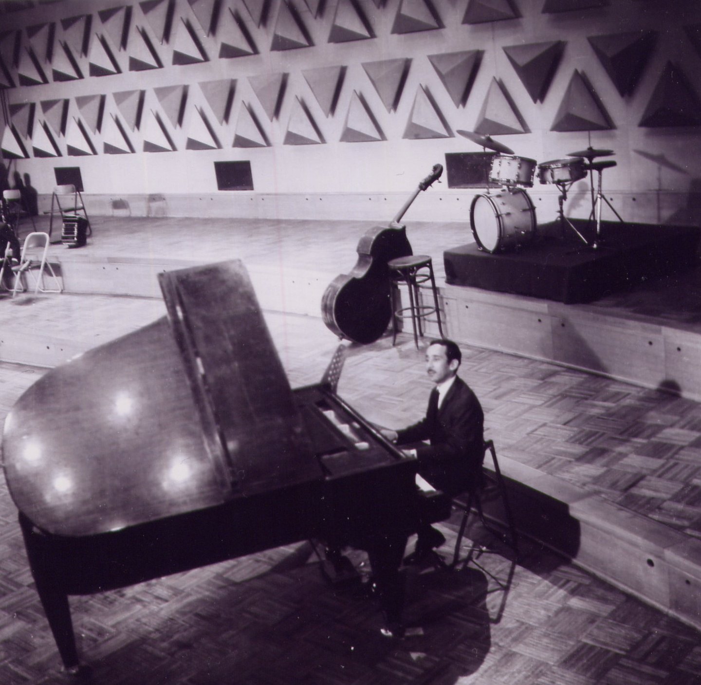 La photo a été prise , a l'auditorium une grande salle de concerts de la ville d'Alger situer a la radio algérienne au début des années 60. Ahmed Malek était non seulement compositeur de musique de films mais aussi chef d'orchestre de l'ensemble de l'orchestre de la radio et télévision Algérienne, professeur de flute au conservatoire d'Alger et il jouait de plusieurs instruments.