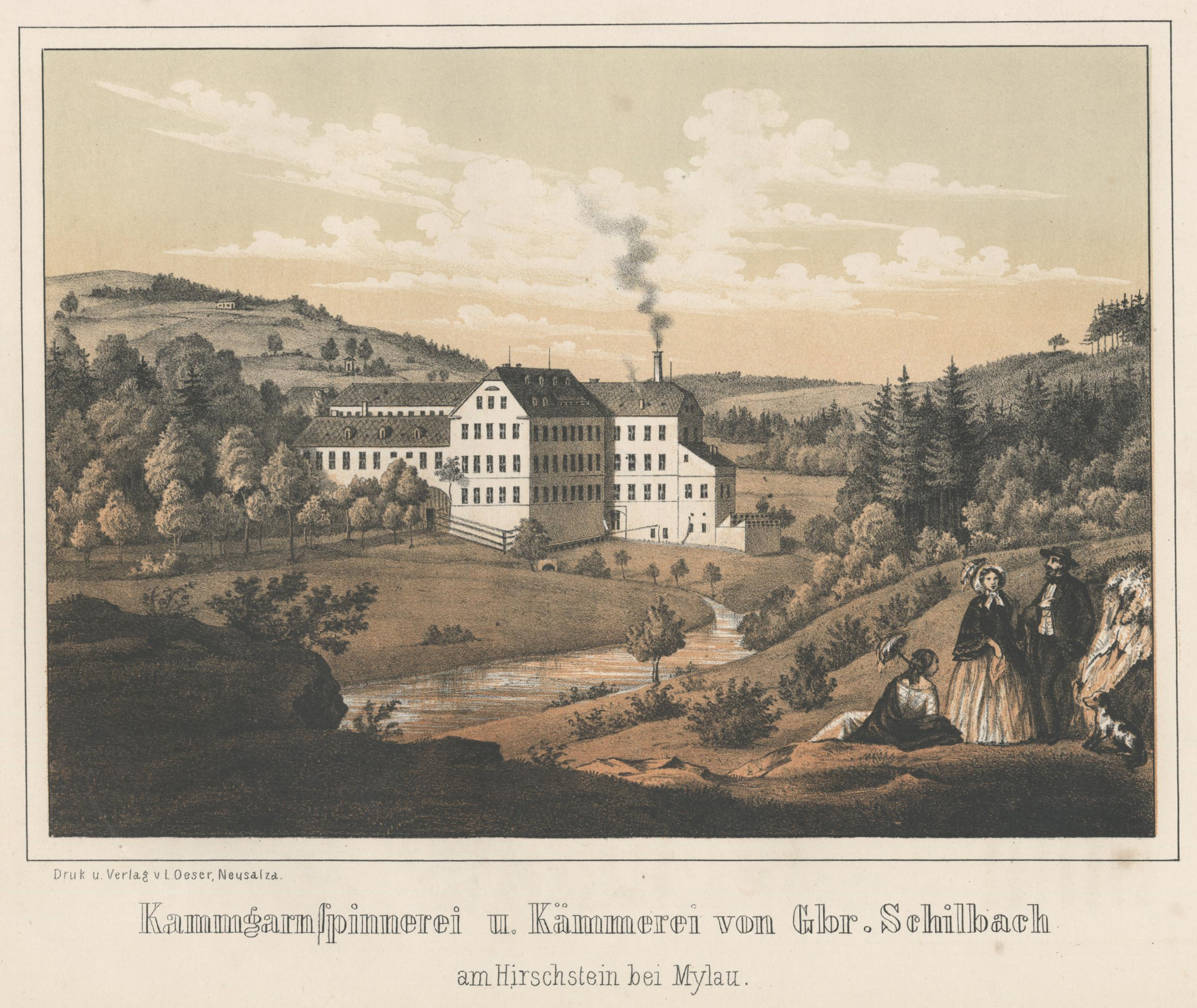 Deutsch: Kammgarnspinnerei und Kämmerei von Gbr. Schilbach am Hirschstein bei Mylau