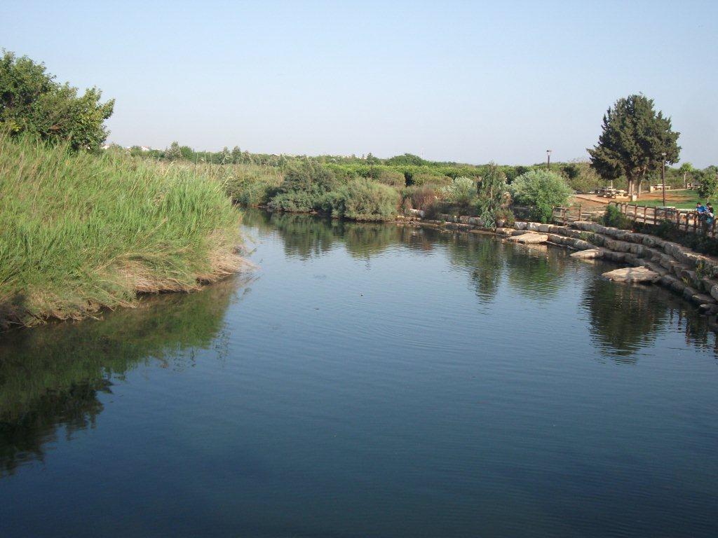 Description بالعبرية: נחל אלכסנדר כפי שנראה מגשר הצבים