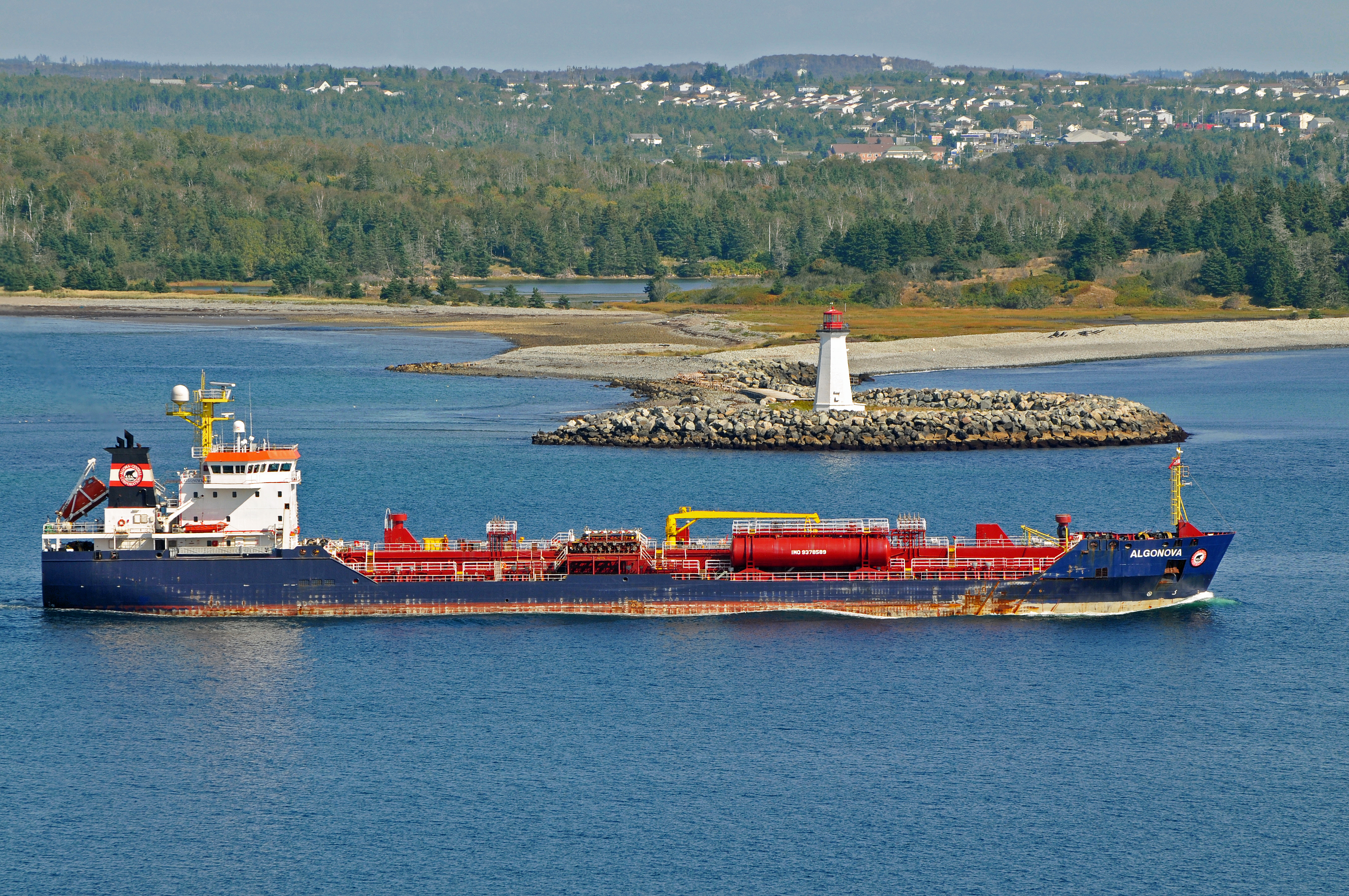 PLEASE, no multi invitations, glitters or self promotion in your comments. My photos are FREE for anyone to use, just give me credit and it would be nice if you let me know, thanks - NONE OF MY PICTURES ARE HDR. This was taken on the opposite side of the harbour from York Redoubt a old fortification. Maugher Beach Lighthouse stands at the end of a curving beach on McNabs Island, at the entrance to Halifax harbour. The beach was named after Joshua Maugher, a rum distiller and merchant who used the beach to dry fish. It is also known as "Hangman's Beach" because the Royal Navy used it to hang the bodies of executed mutineers as a warning to crews of other ships entering the harbour. The first light was lit here in 1828, from a granite Martello Tower with a red roof. The present lighthouse was built in 1941. Tower Height: 16.46m (54ft) Light Height: 17.37m (57ft) above water level The Algonova passing by the lighthouse was built in Turkey in 2008. Its function is to provide safe and reliable transportation services for liquid petroleum products throughout the Great Lakes, St. Lawrence Seaway and Atlantic Canada regions. Customers include major oil refiners, leading wholesale distributors and large consumers of petroleum products who demand the highest levels of quality and service. It is registered in St. Catharines, Canada. |