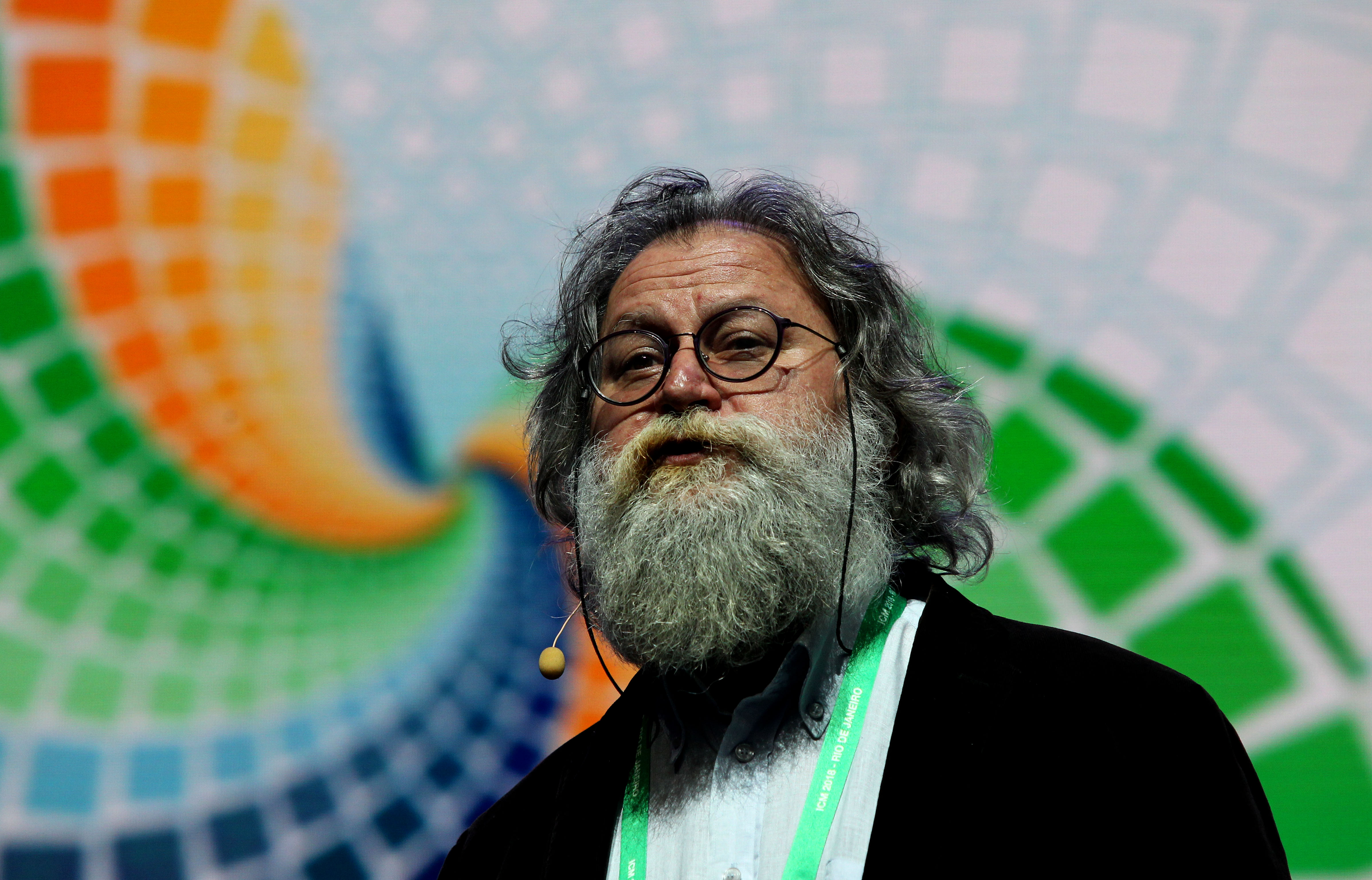 English: Ali Nesin at the International Congress of Mathematicians (ICM) 2018 in Rio de Janeiro giving the Leelavati Prize Lecture. Photo: Marcos Arcoverde |