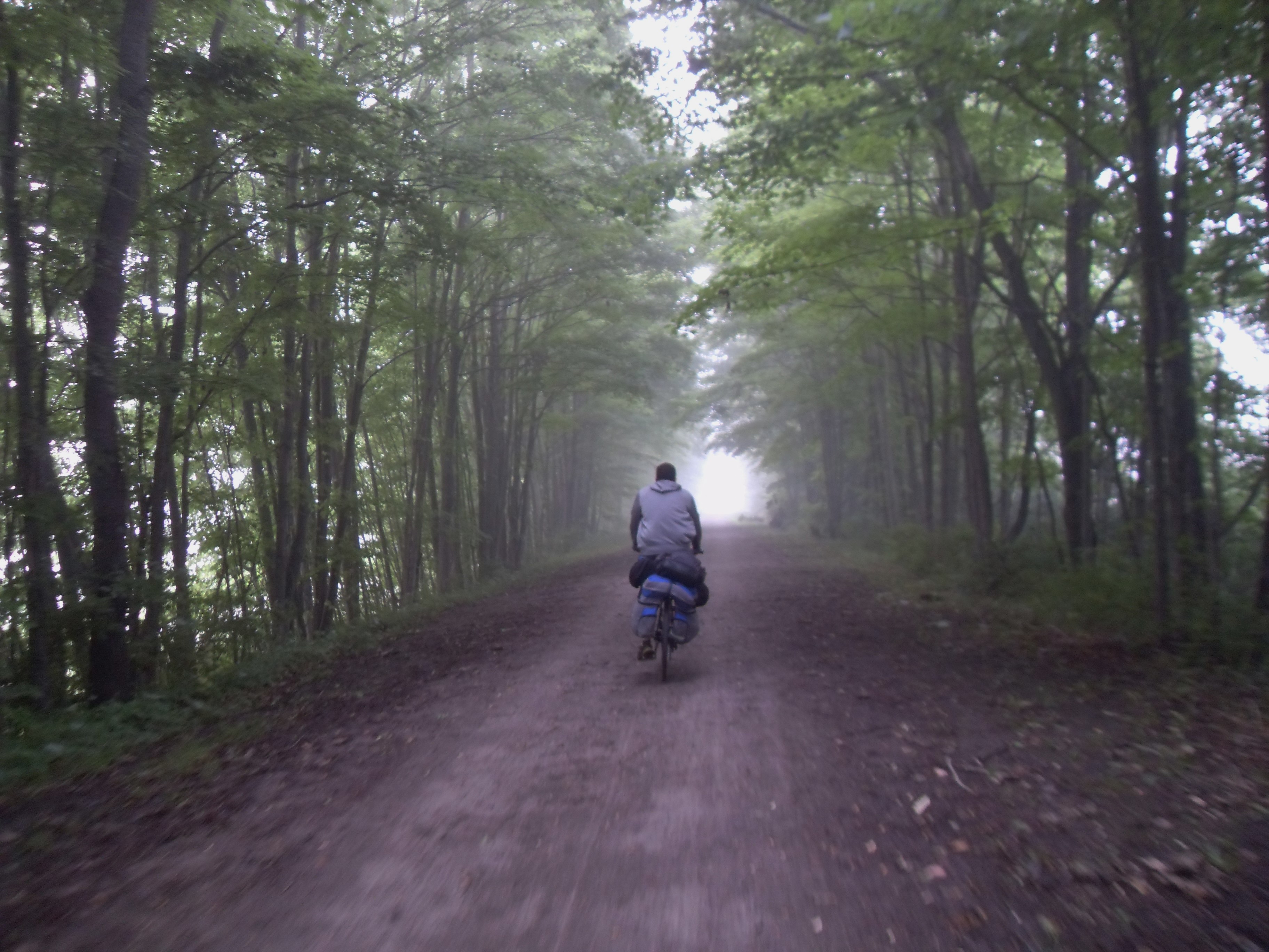 English: Riding on the trail on a misty morning in July between Rockwood and Meyersdale |