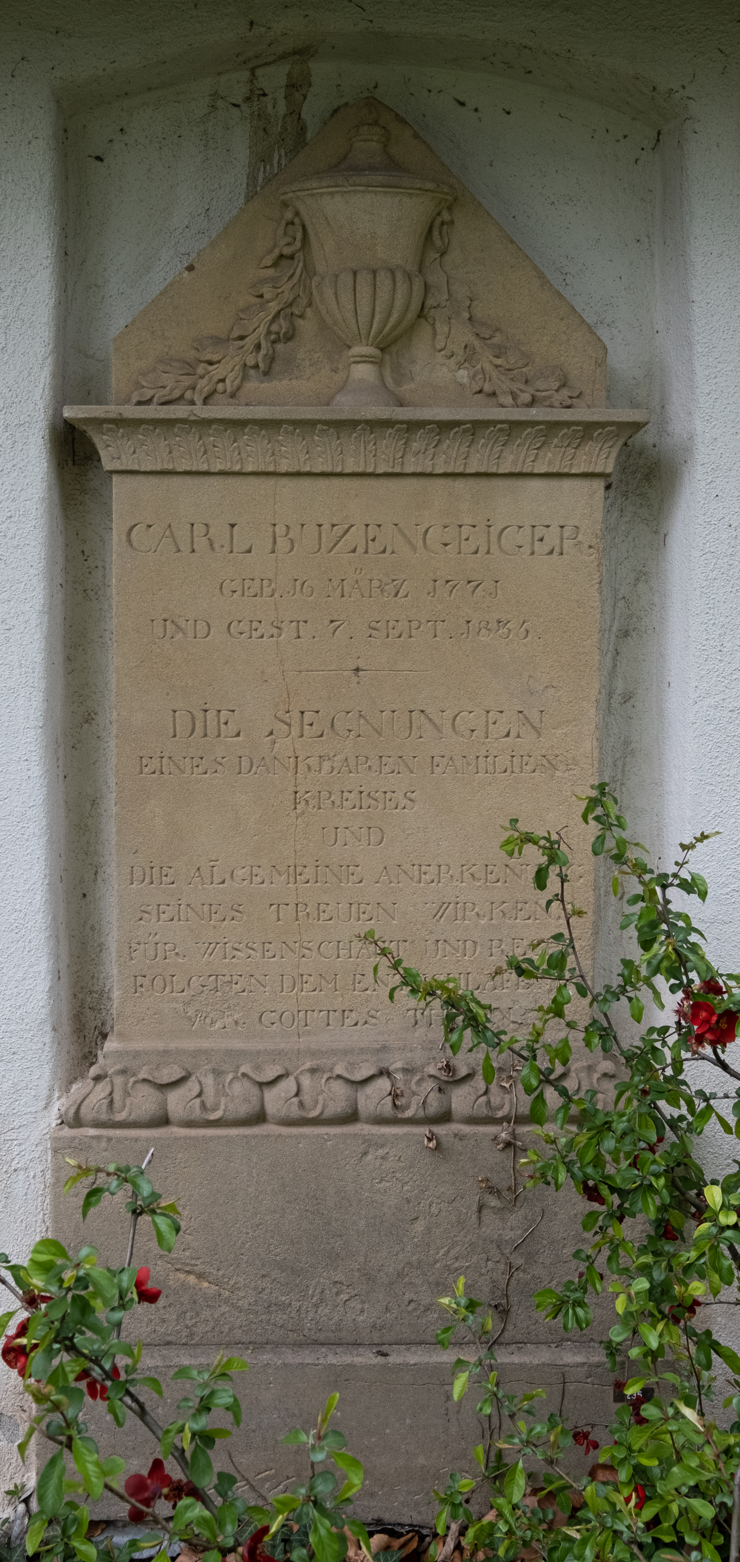 English: Gravestone of Carl Buzengeiger on the old cemetery in Freiburg im Breisgau |