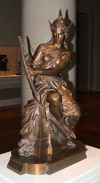 from en wikipedia. Amazon Preparing for Battle (Queen Antiope or Hippolyta?) or Armed Venus, in National Gallery of Art by Pierre-Eugène-Emile Hébert. Picture taken in April 2004.
