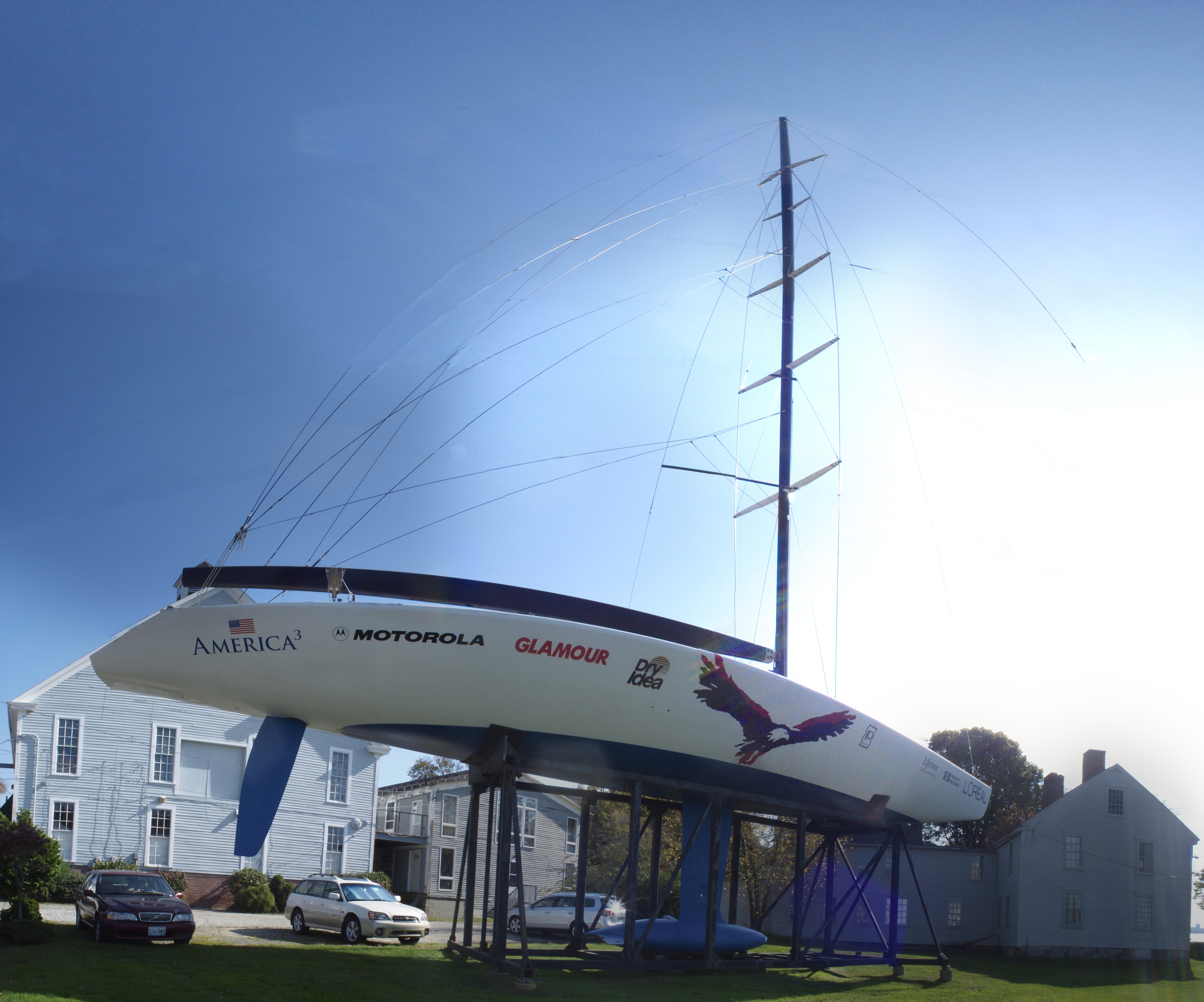 English: America³ on display outside the Herreshoff Marine Museum in Bristol, RI |