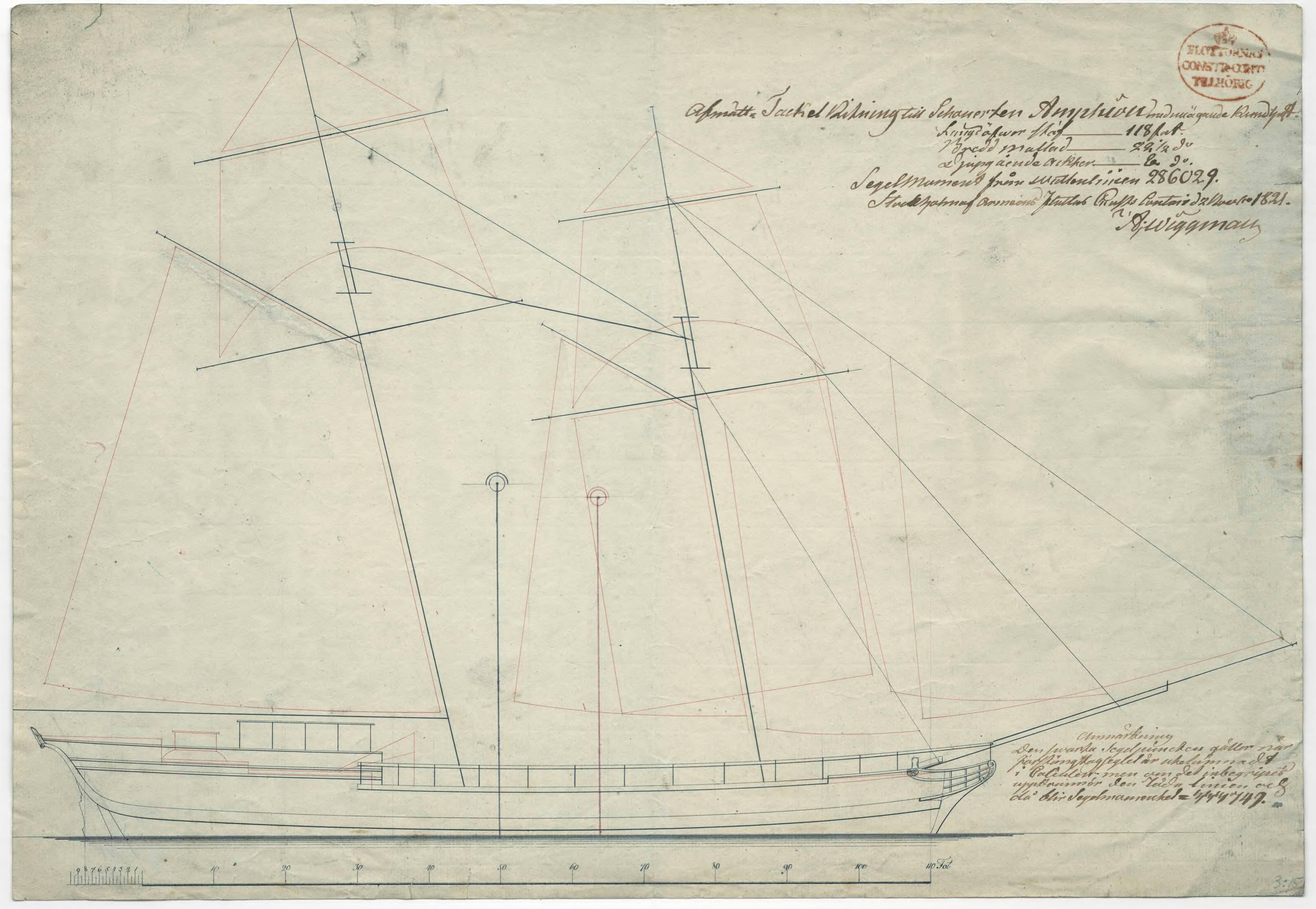 Svenska: Amphion Kungl skonert ( byggt 1777-79), tackelritning A Wiggman |