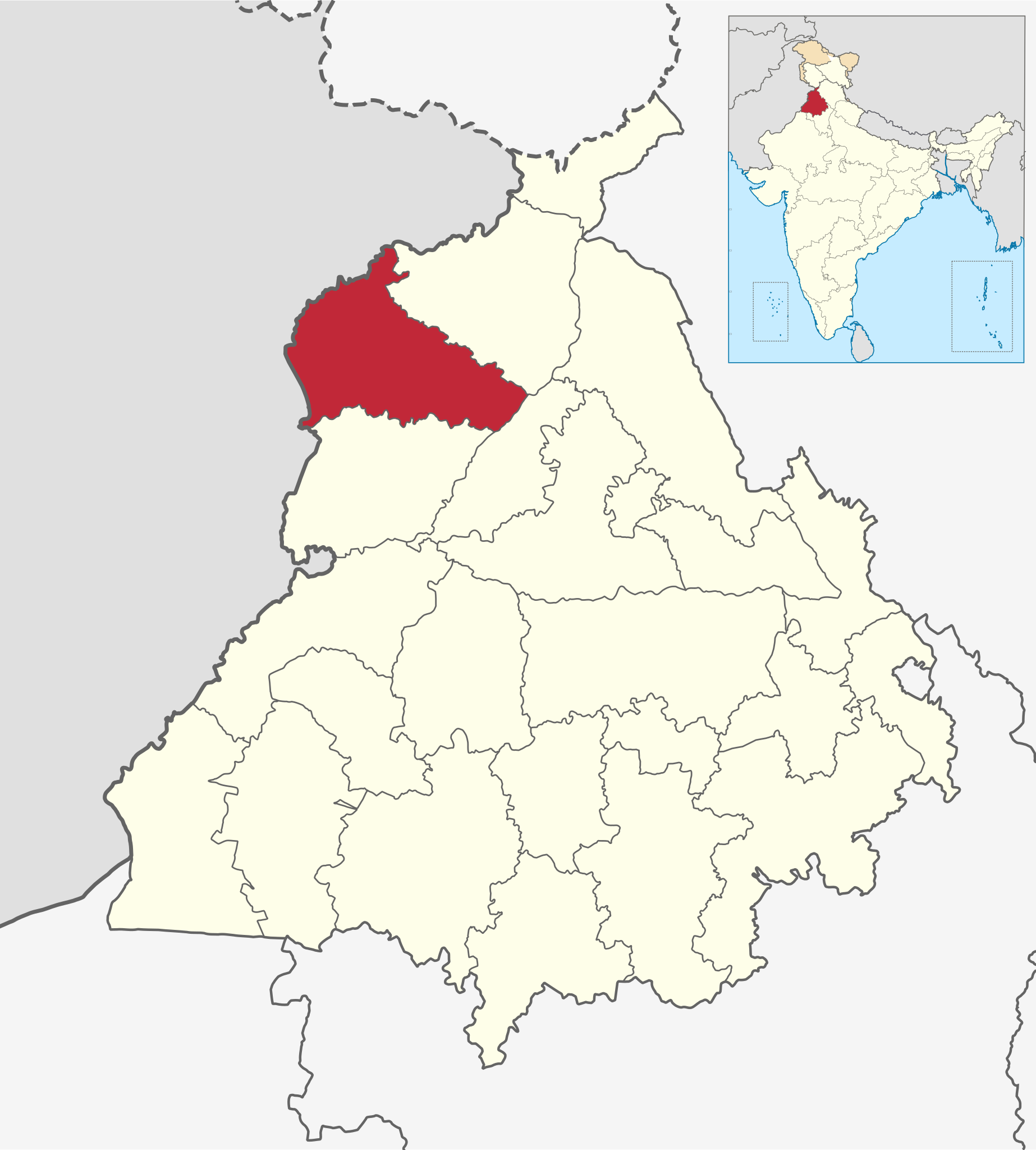 Español: Map o District of X, Punjab (India) |