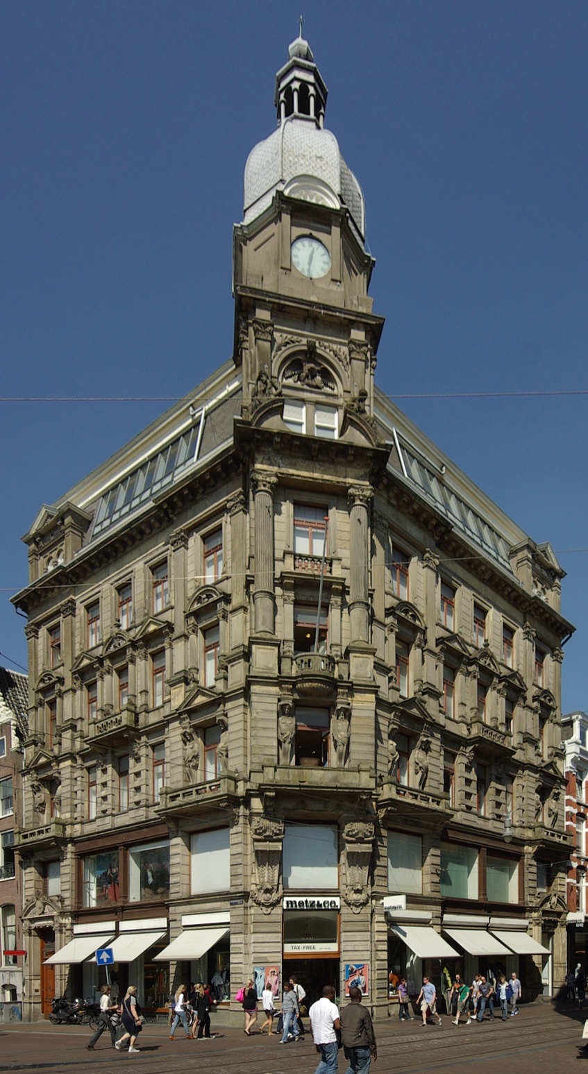 (Dutch) قالب:Object location dec Deutsch: Haus New York (Keizersgracht 455 / Leidsestraat 34-36) in Amsterdam. 1891 im Auftrag der New York Life Insurance Company nach einem Entwurf des Architekten Jac. van Looy errichtet. 1933 wurde das Haus um ein Koepelgebäude von Gerrit Rietveld erweitert (nicht auf dem Foto). |