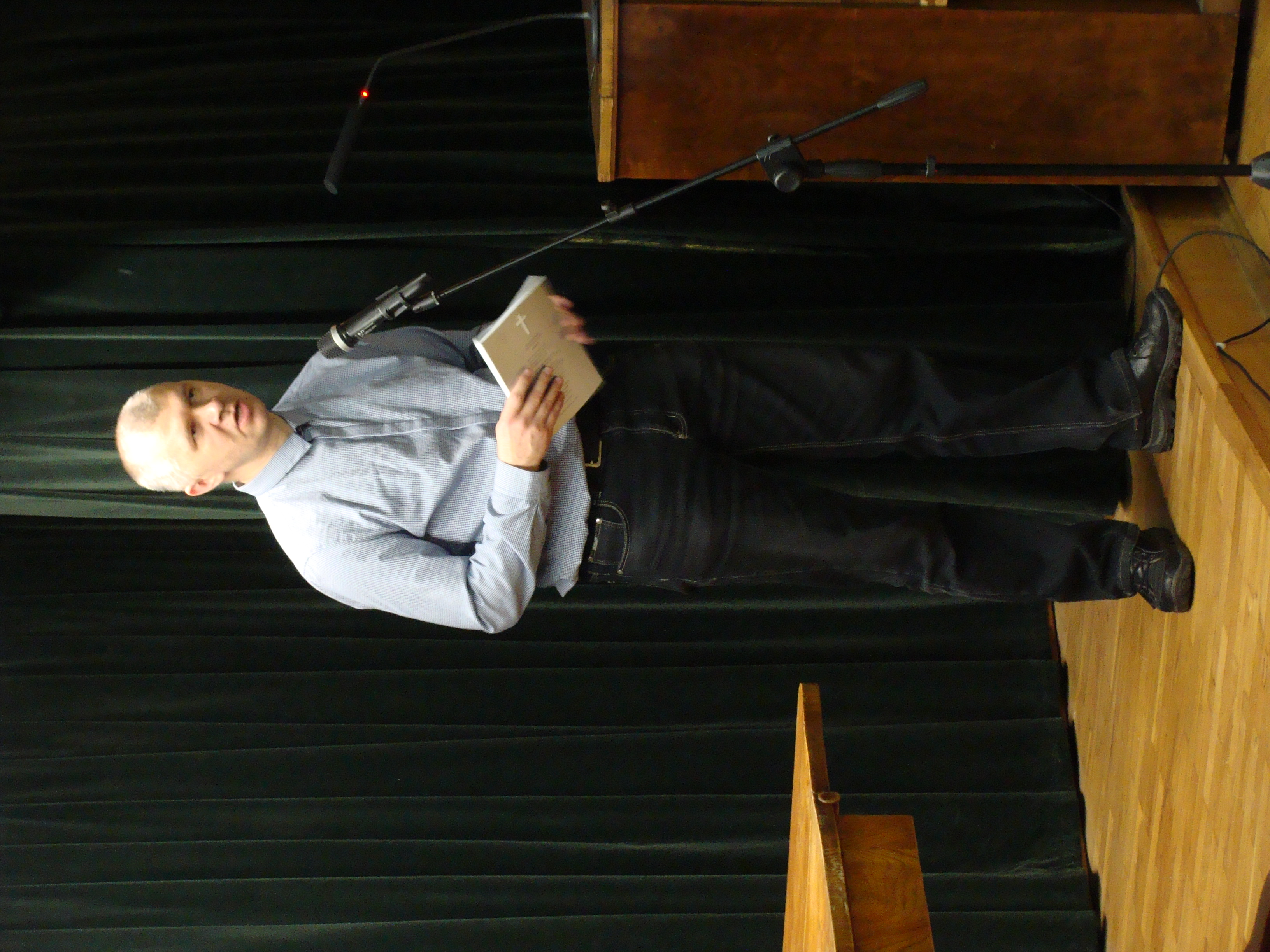 Polski: Anatol Michnawiec, przewodniczący Białoruskiej Pamięci Narodowej, przemawia podczas białoruskiego spotkania literackiego w Domu Literatury na Krakowskim Przedmieściu w Warszawie. |