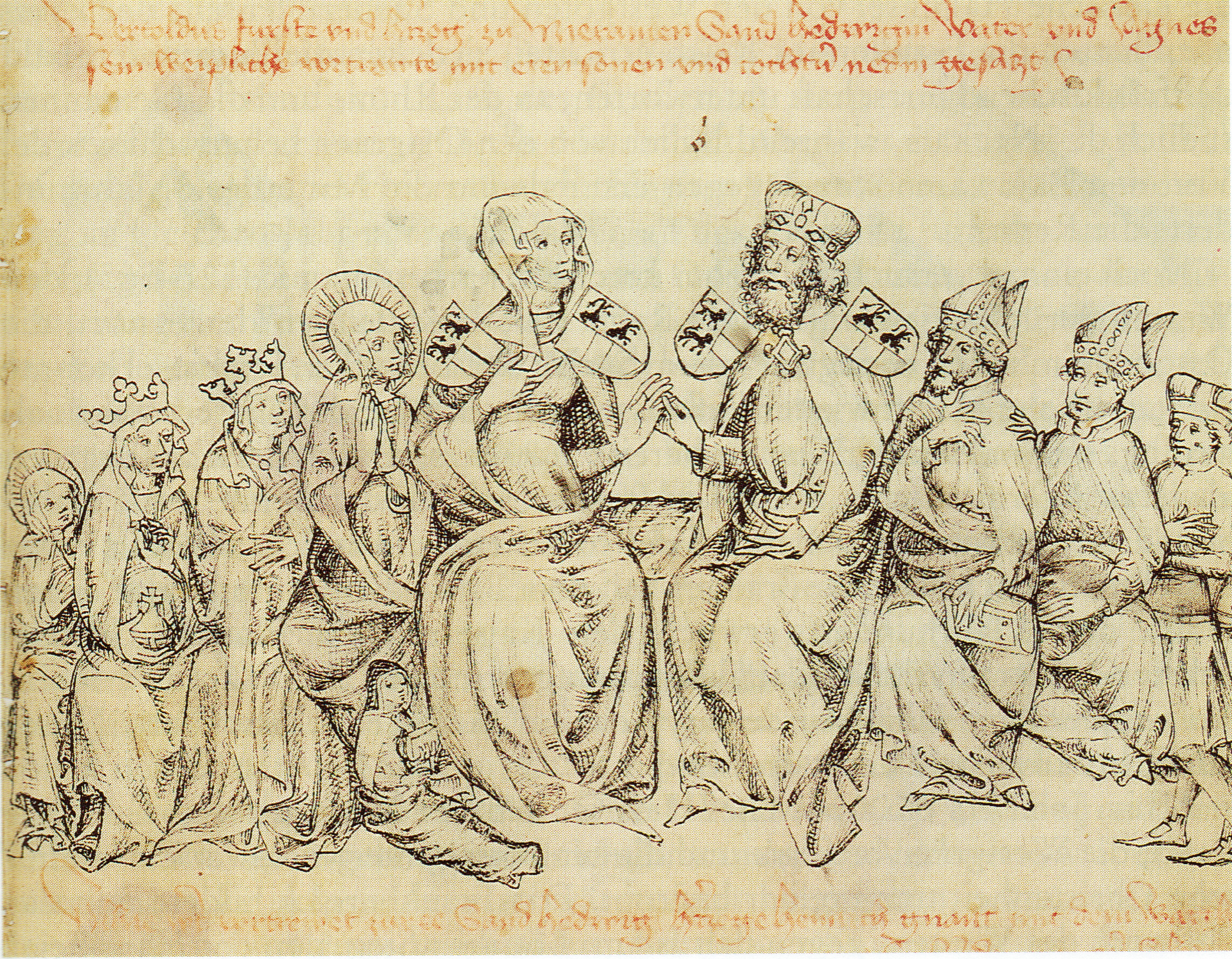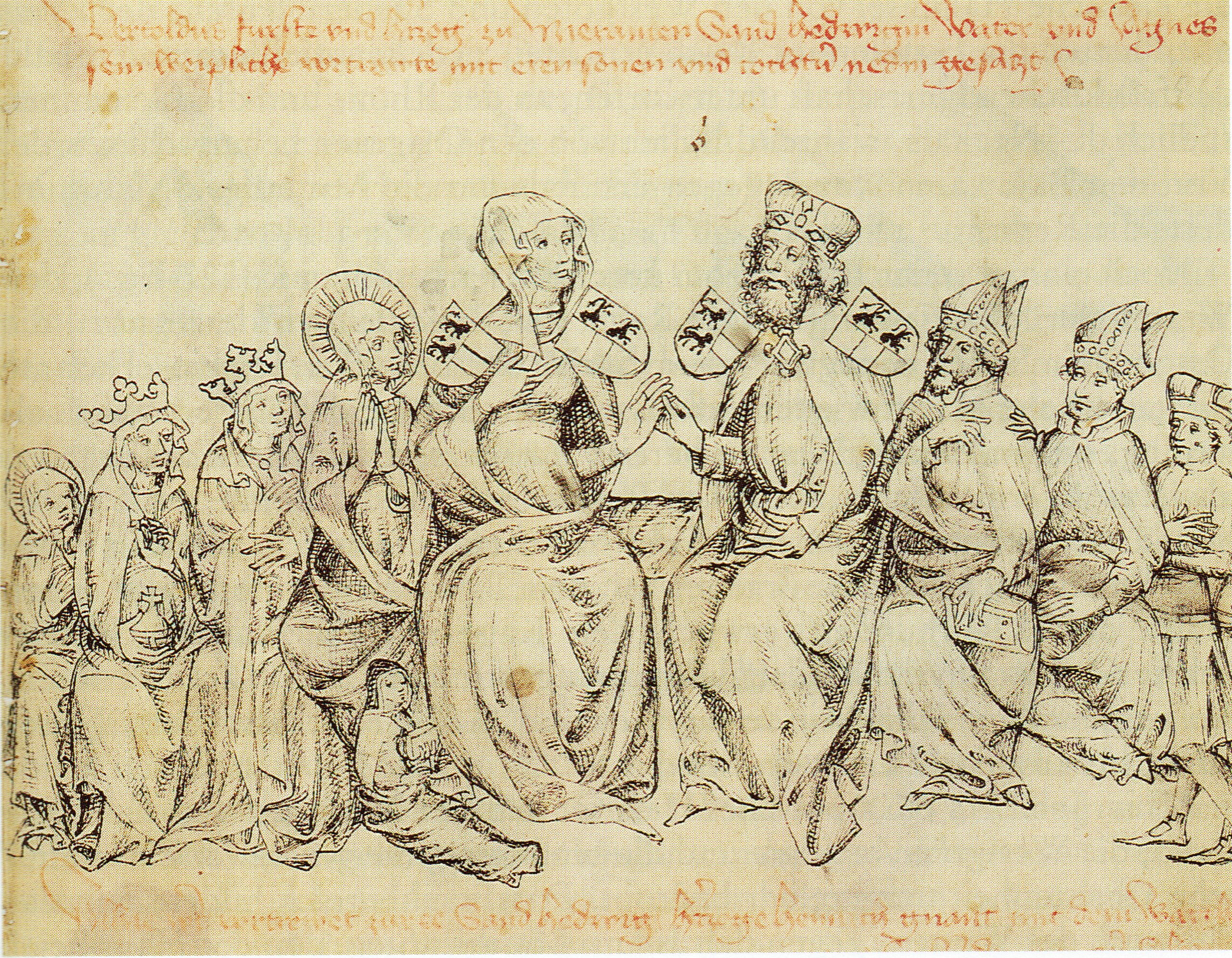 | Berthold IV Andechs-Meran mit seiner Familie in der Freytags Chronik von 1451 | |
