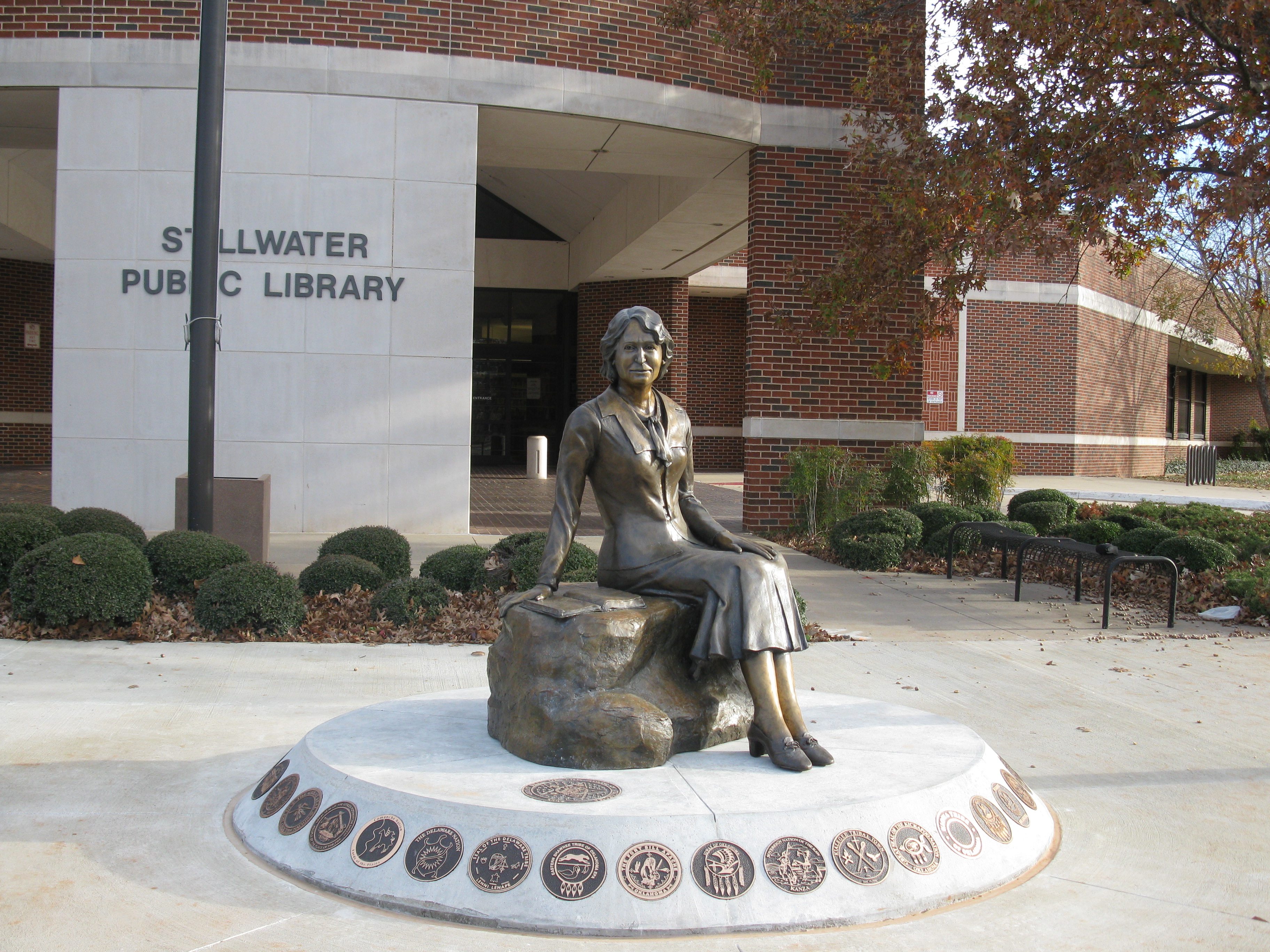 English: The Angie Debo statue at Stillwater Public Library, Stillwater, OK, was sculpted by Phyllis Mantik and installed in Nov. 2010. |