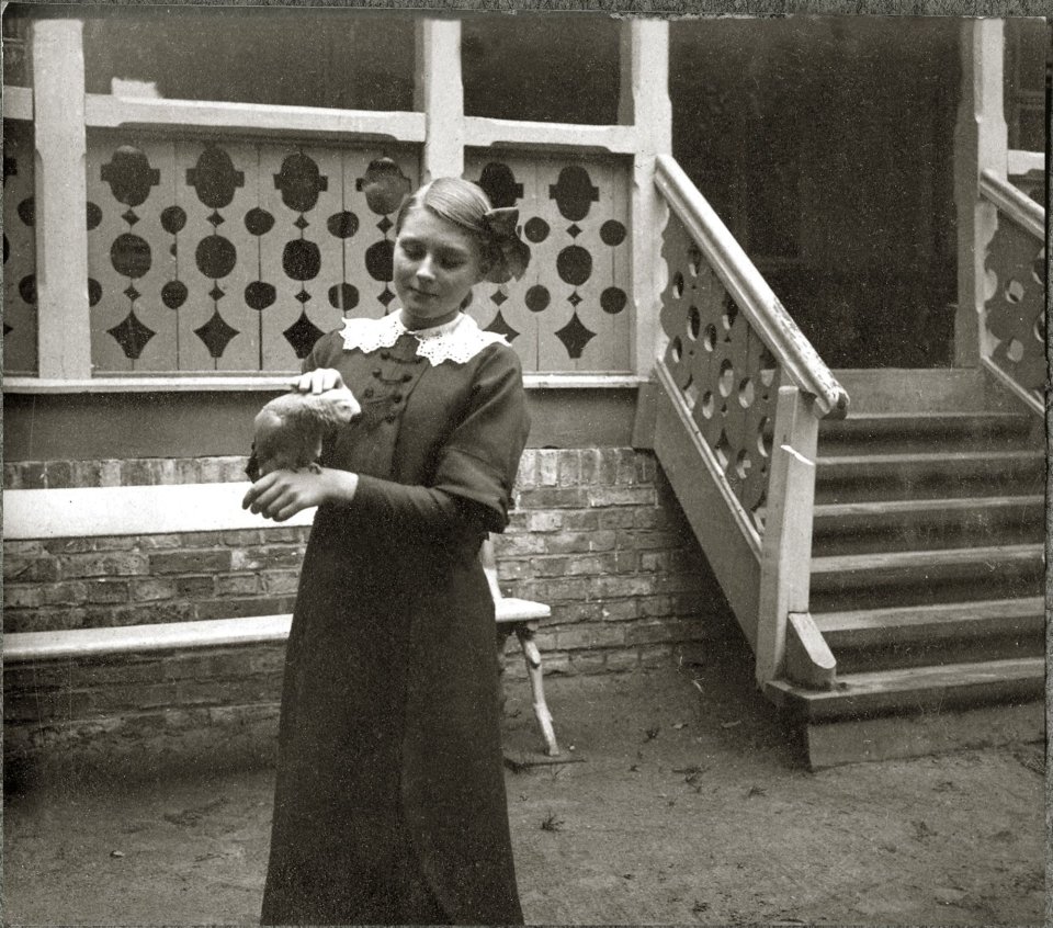 Polski: Anna Iwaszkiewicz z papugą, willa Aida, Podkowa Leśna 1914 |