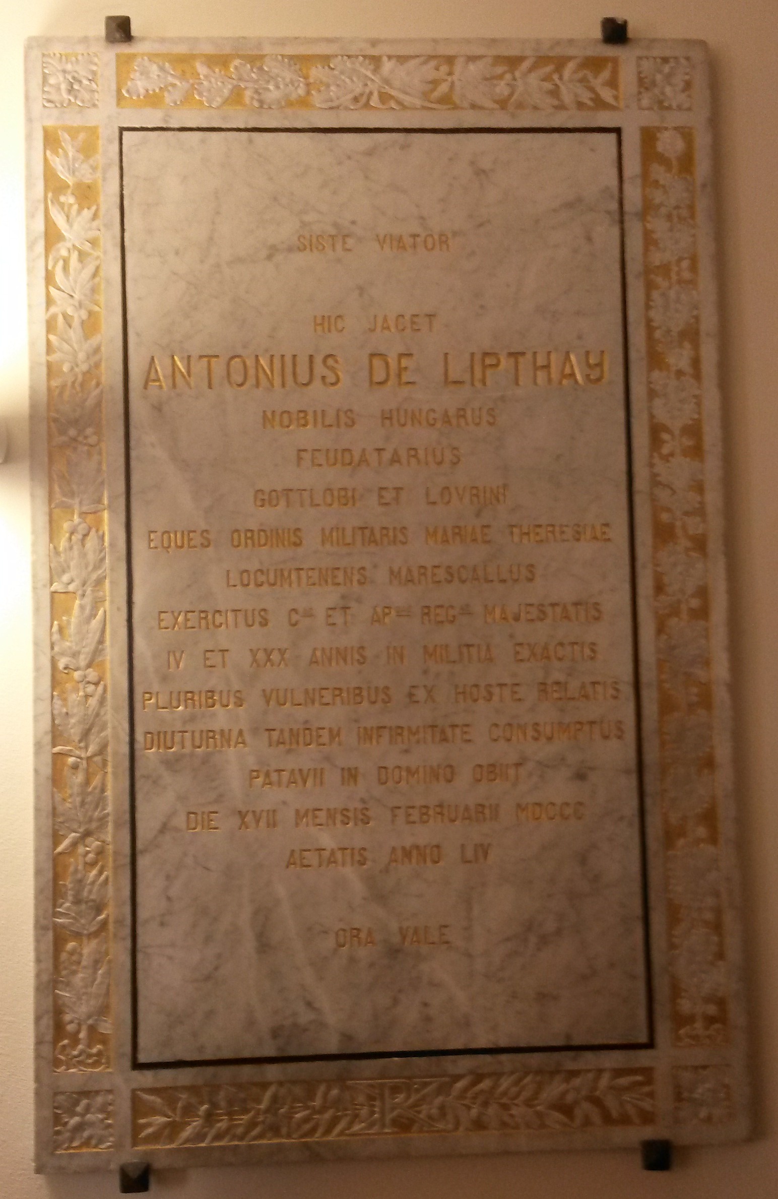 Italiano: Lapide funeraria di Anton de Lipthay