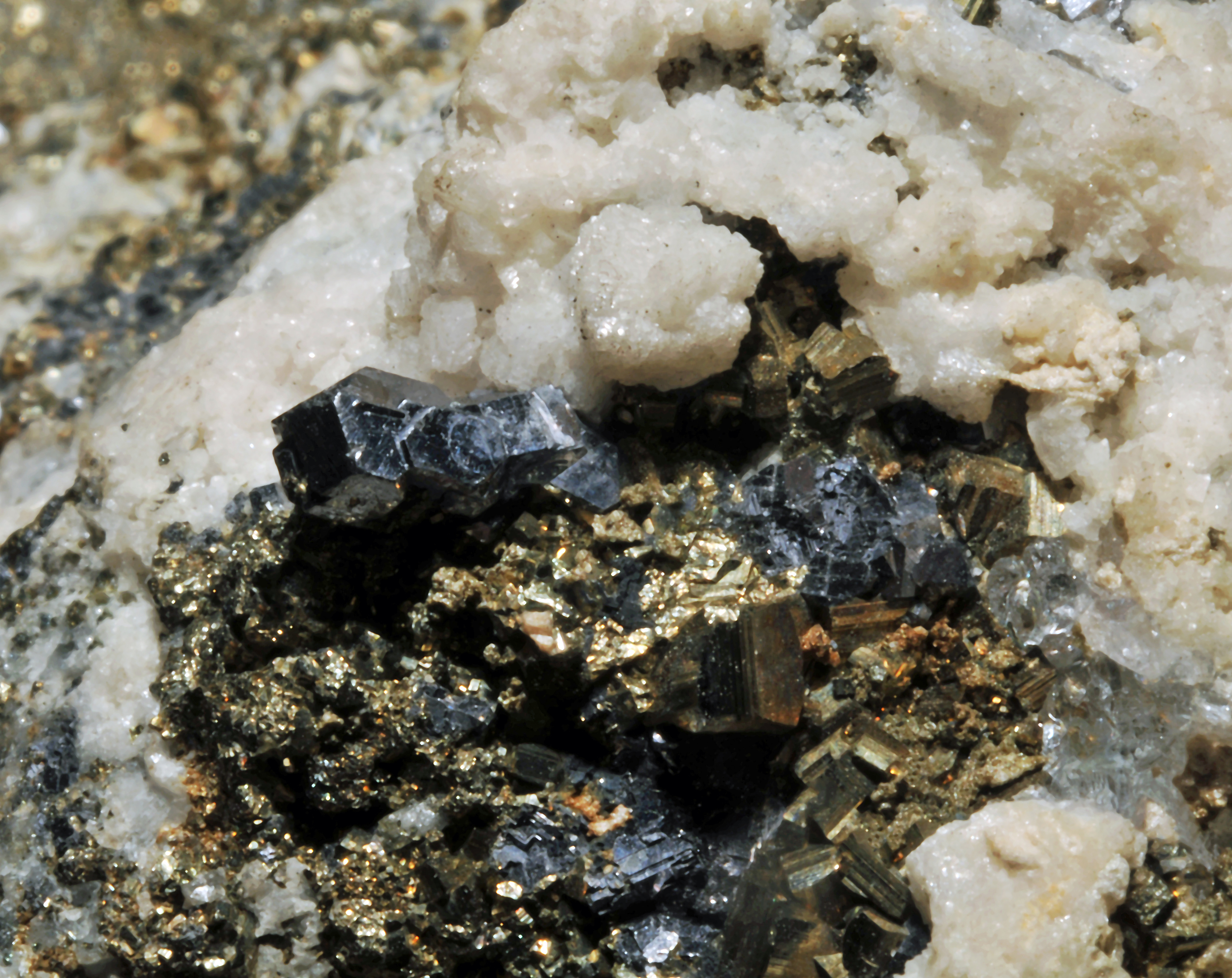 ملف:Arsénopyrite, pyrite, calcite et quartz (Mexique).JPG
