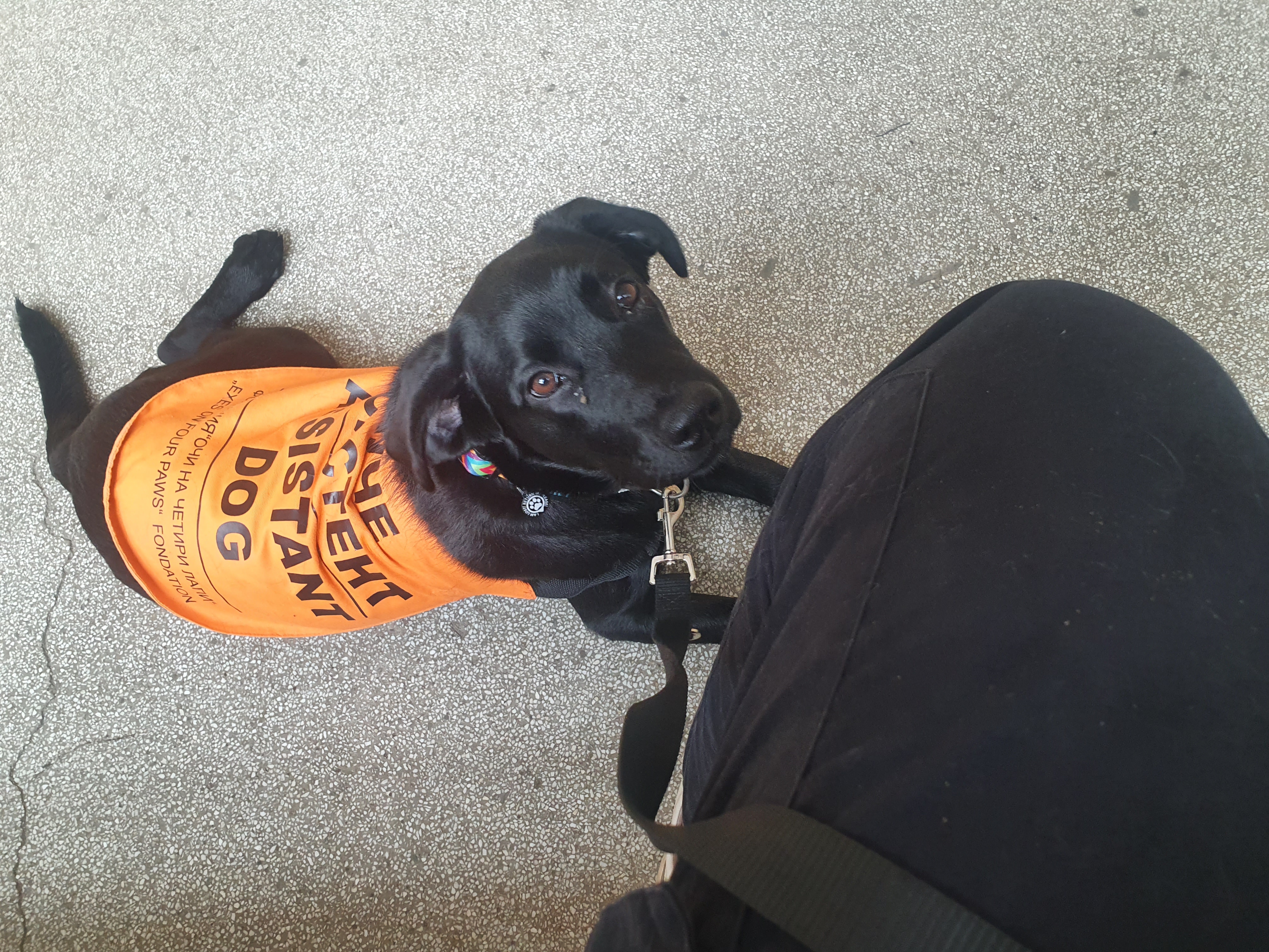English: Assistance dog helping it's handler in the hospital