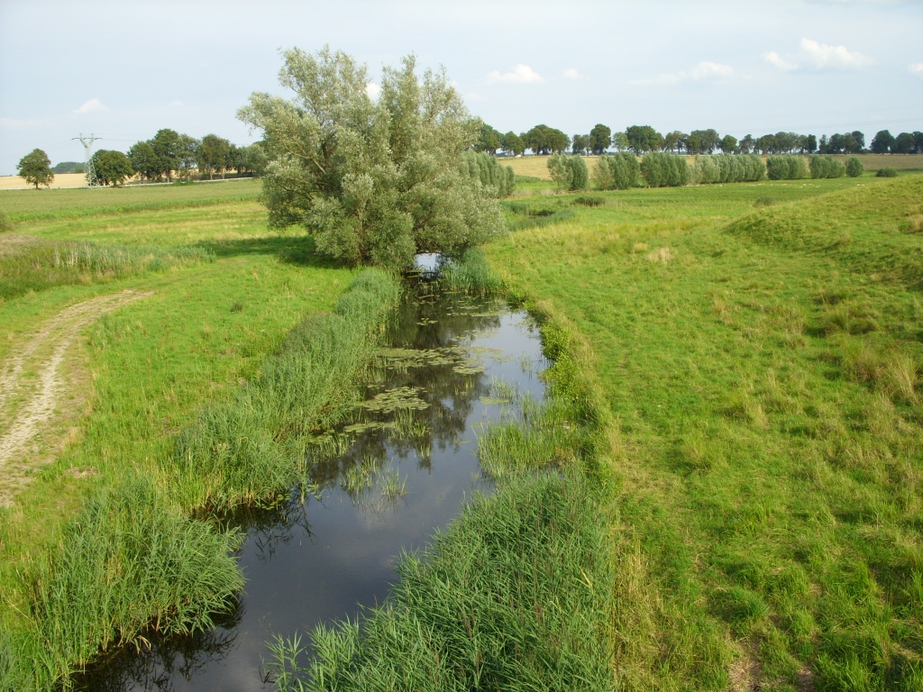 Foto aufgenommen von der zu der Zeit noch nicht freigegebenen Straßenbrücke der Schweriner Umgehungsstraße (B104/106) English: Aubach between Kirch Stück and Schwerin, Germany |