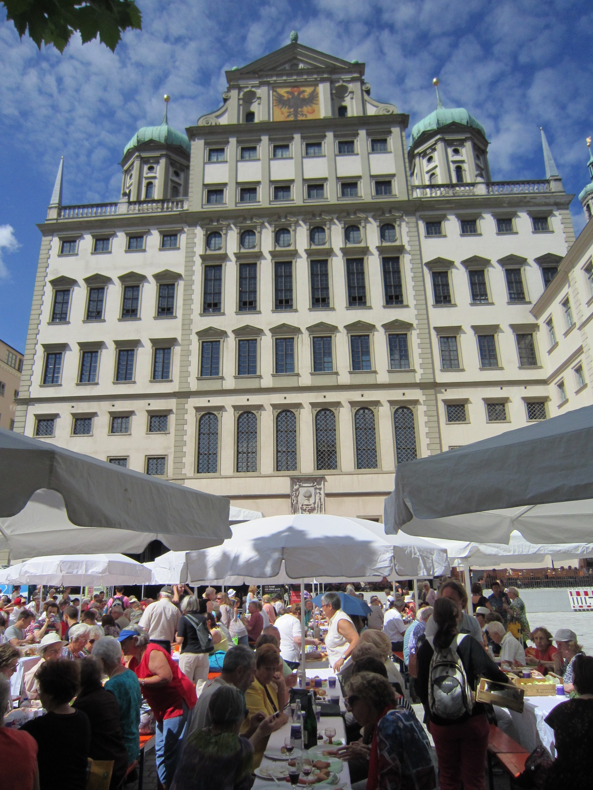 English: Peace meal behind the Augsburg townhall Deutsch: Friedenstafel hinter dem Augsburger Rathaus |