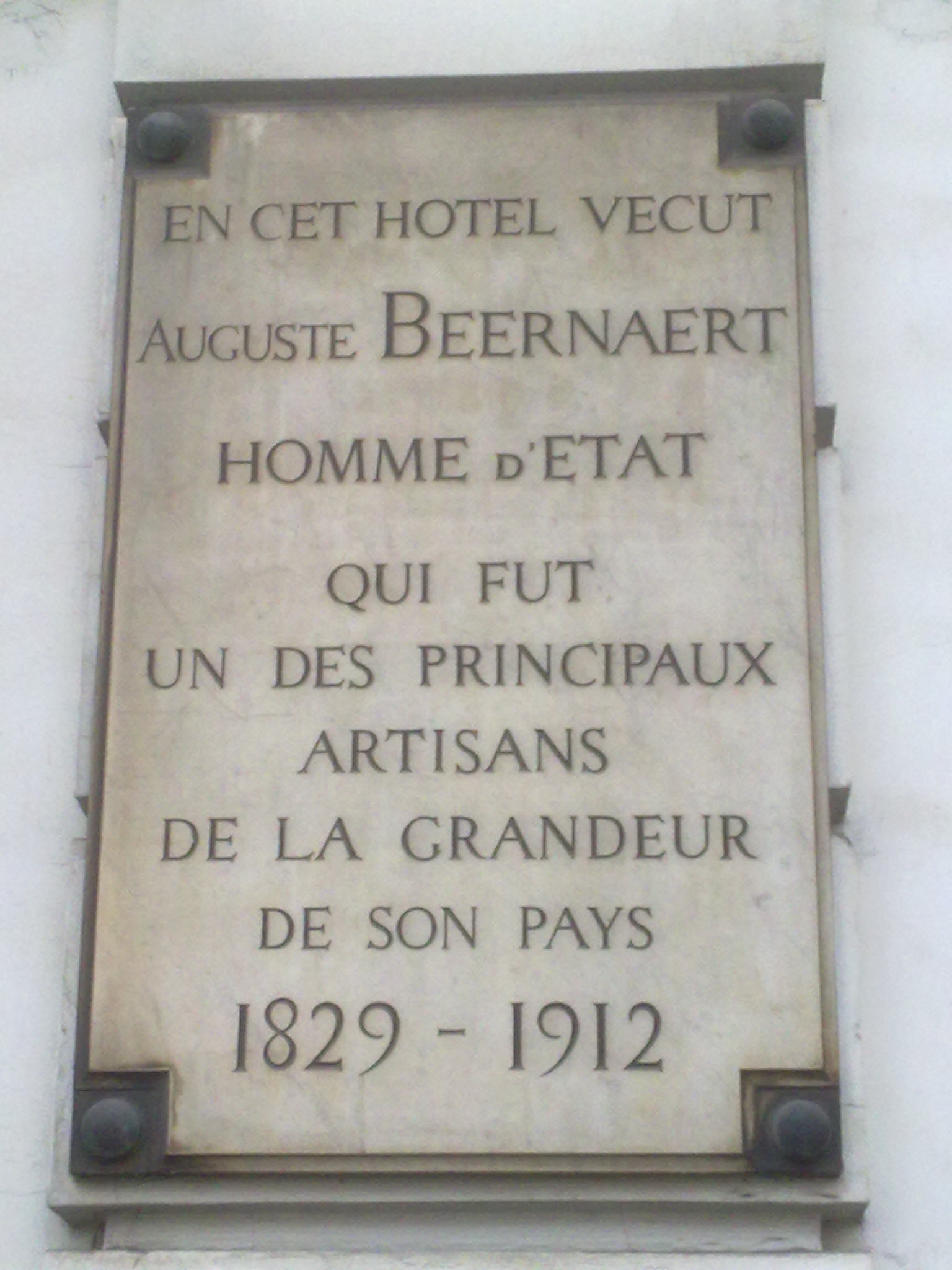 ملف:Auguste Beernaert plaque.jpg