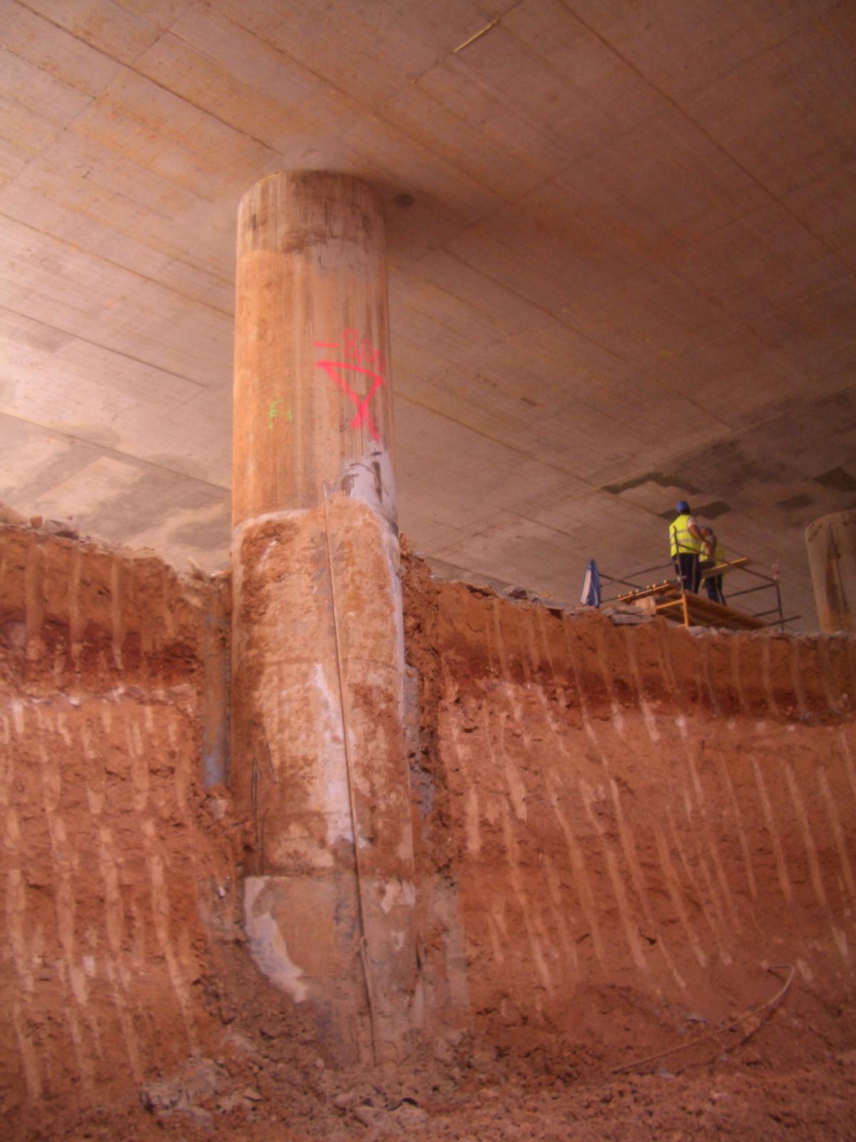 Deutsch: Aushub unter dem Deckel mit Pfahlstütze im Stahlmantel |