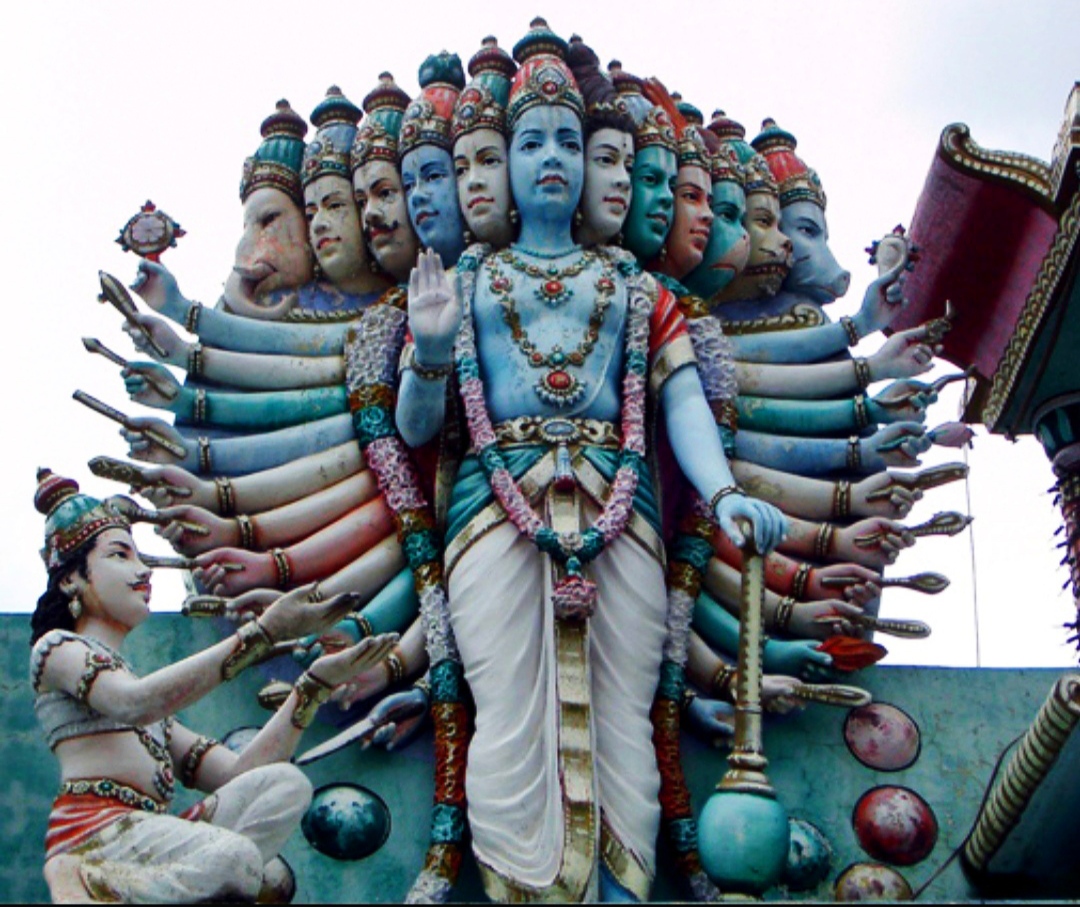 | Description | Singapore. Statue of Krishna as Vishnu in his Vishwarupa (Universal form). Krishna showed his Vishwarupa to Arjuna, during the narration of the Bhagavad Gita before the Mahabharata war. |