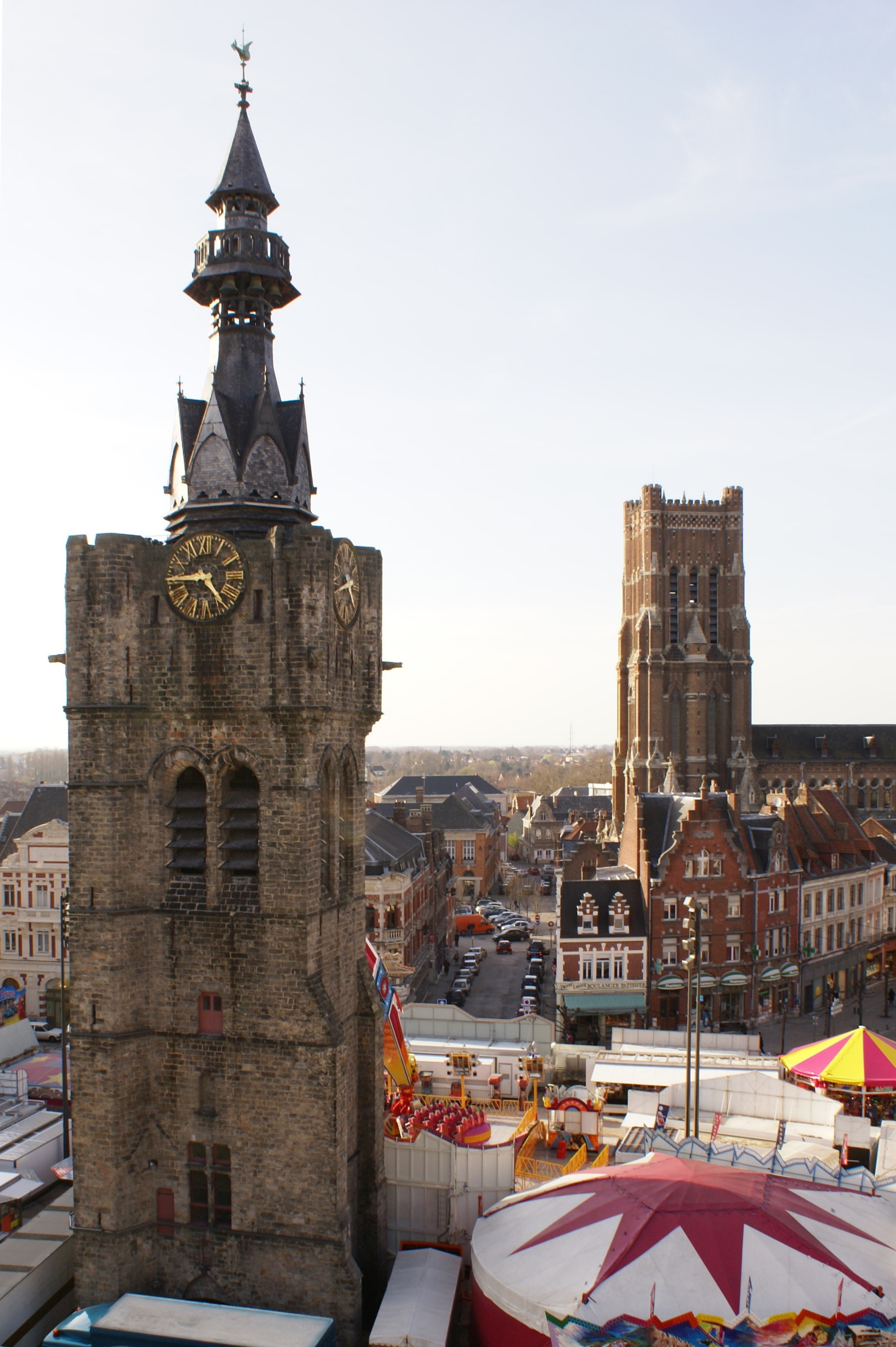 ملف:Béthune belfry and church during spring fair.JPG