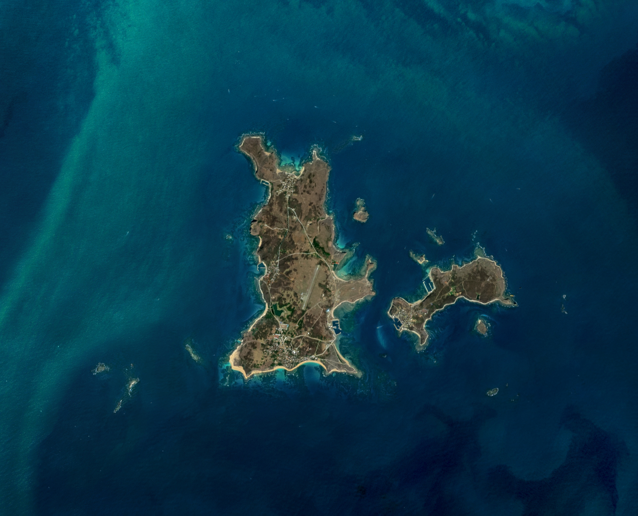English: Satellite image of Bāng-uann-tó (Wang'an Island) along with surrounding islands and islets, taken by the MultiSpectral Instrument (MSI) aboard ESA's Sentinel-2B satellite on December 29, 2021 (UTC).