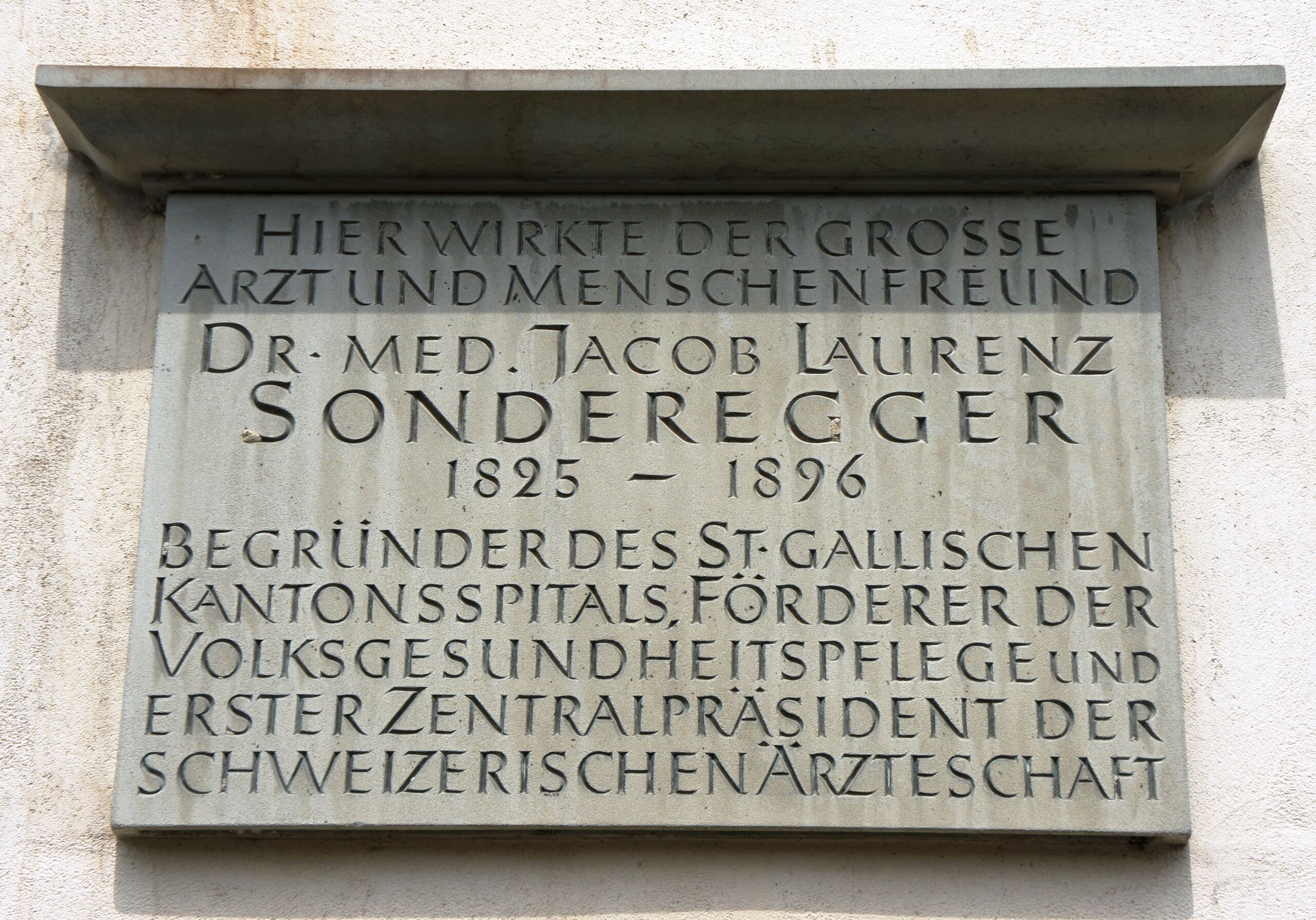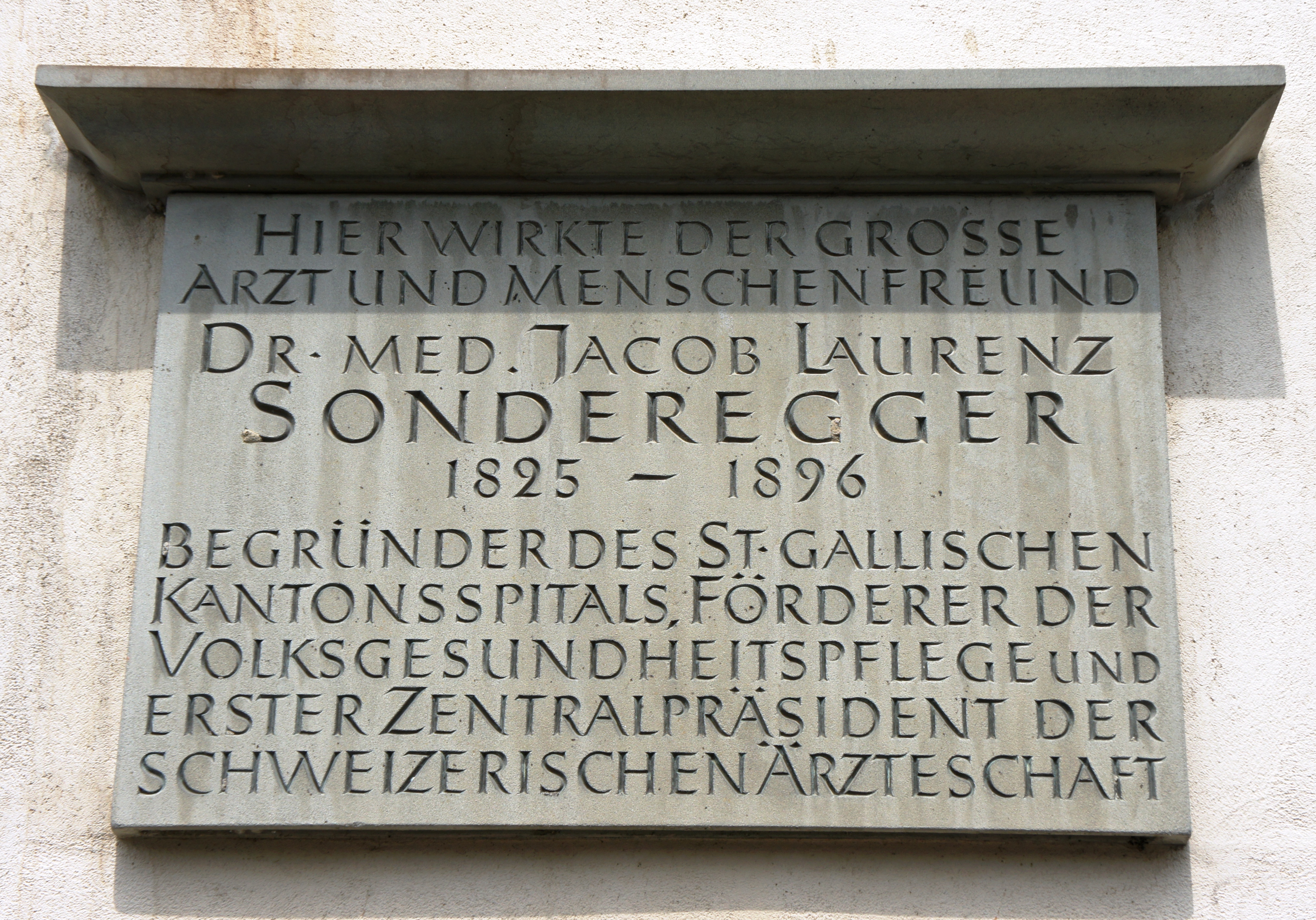 Deutsch: Gedenktafel für Jacob Laurenz Sonderegger am Haus an der Hauptstrasse 78 in Balgach.