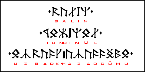 English: Balin's tomb upper inscription, set using the Angerthas font for Cirth runes.