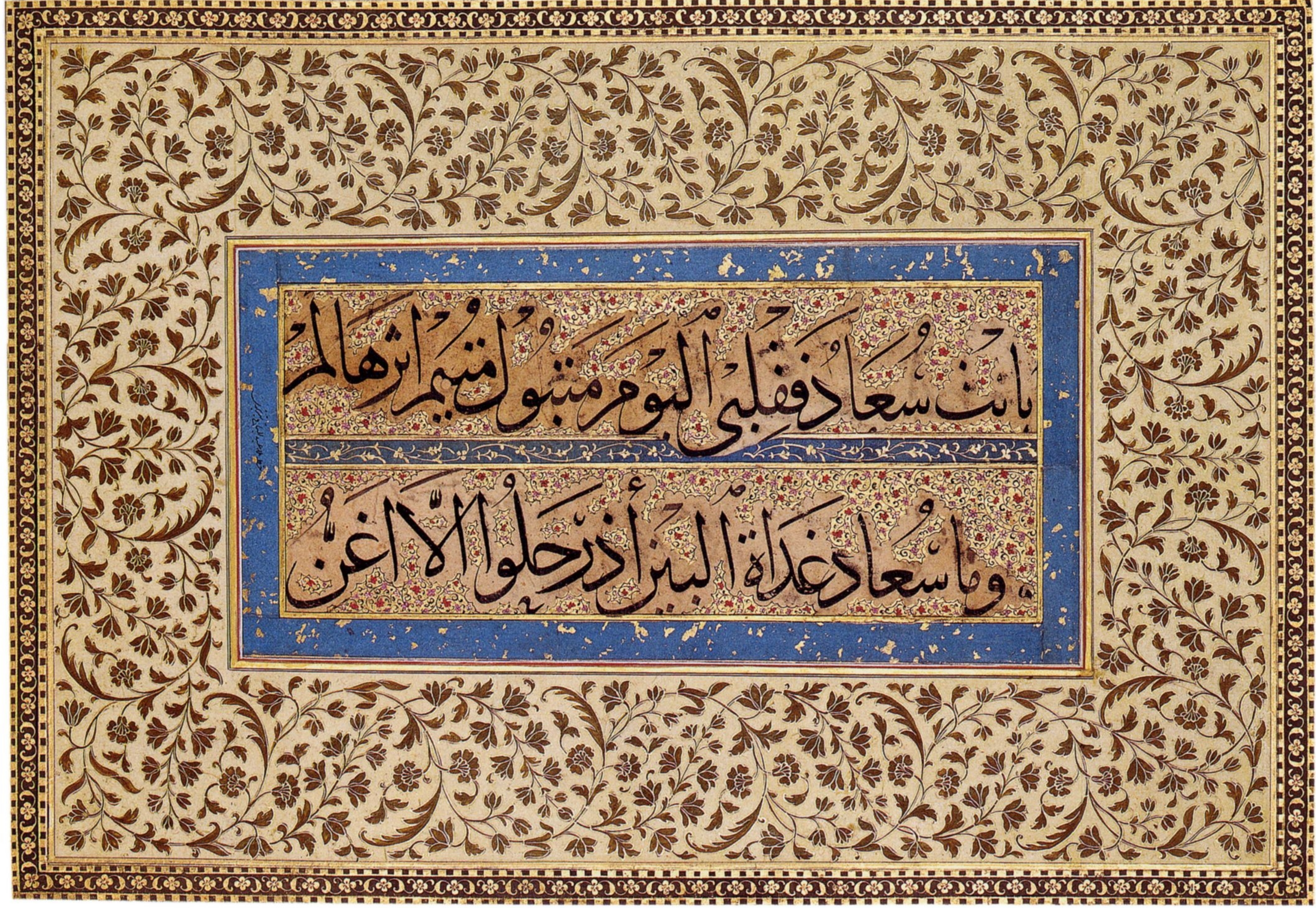 English: Calligraphy containing the beginning of the poem Al Burda by Kaab bin Zuhair. Probably Iran, 16th century |