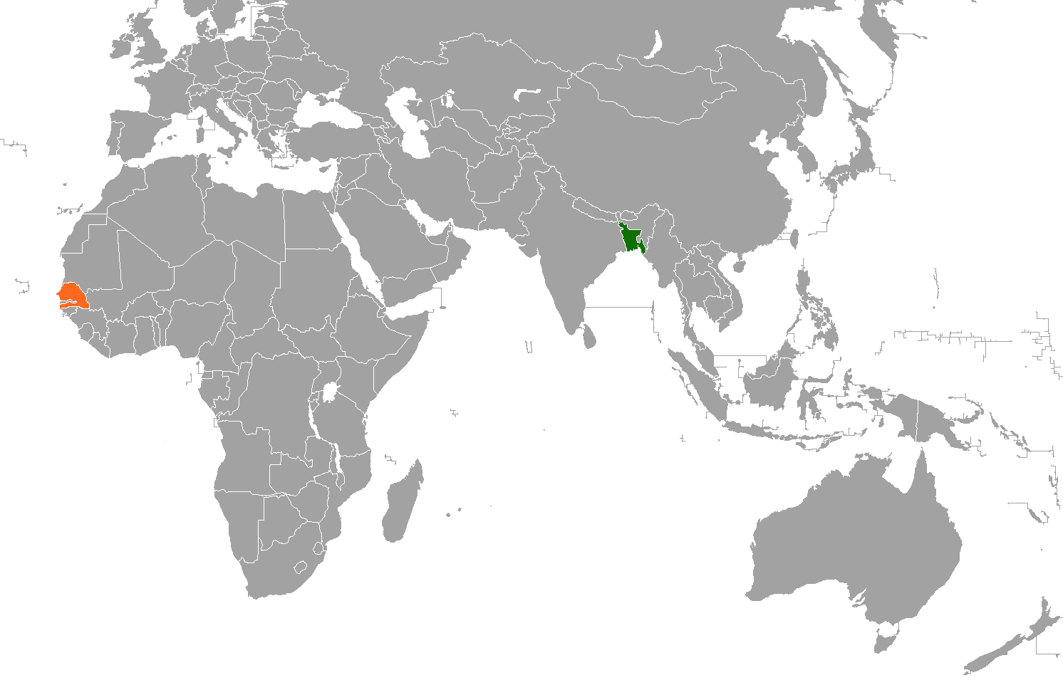 English: Map showing locations of Bangladesh and Senegal |