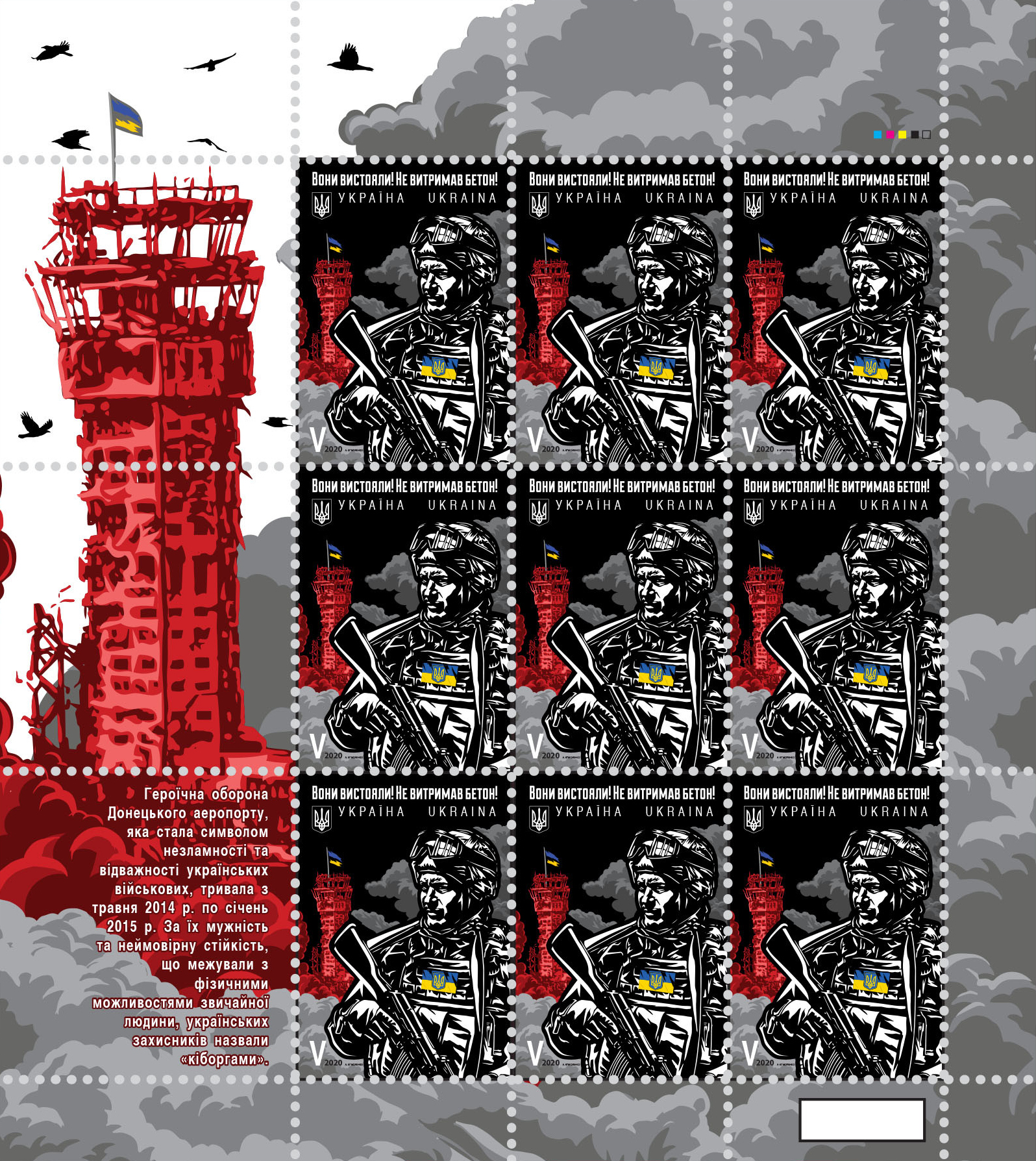 ملف:Battle of Donetsk Airport 2020 stampsheet of Ukraine.jpg